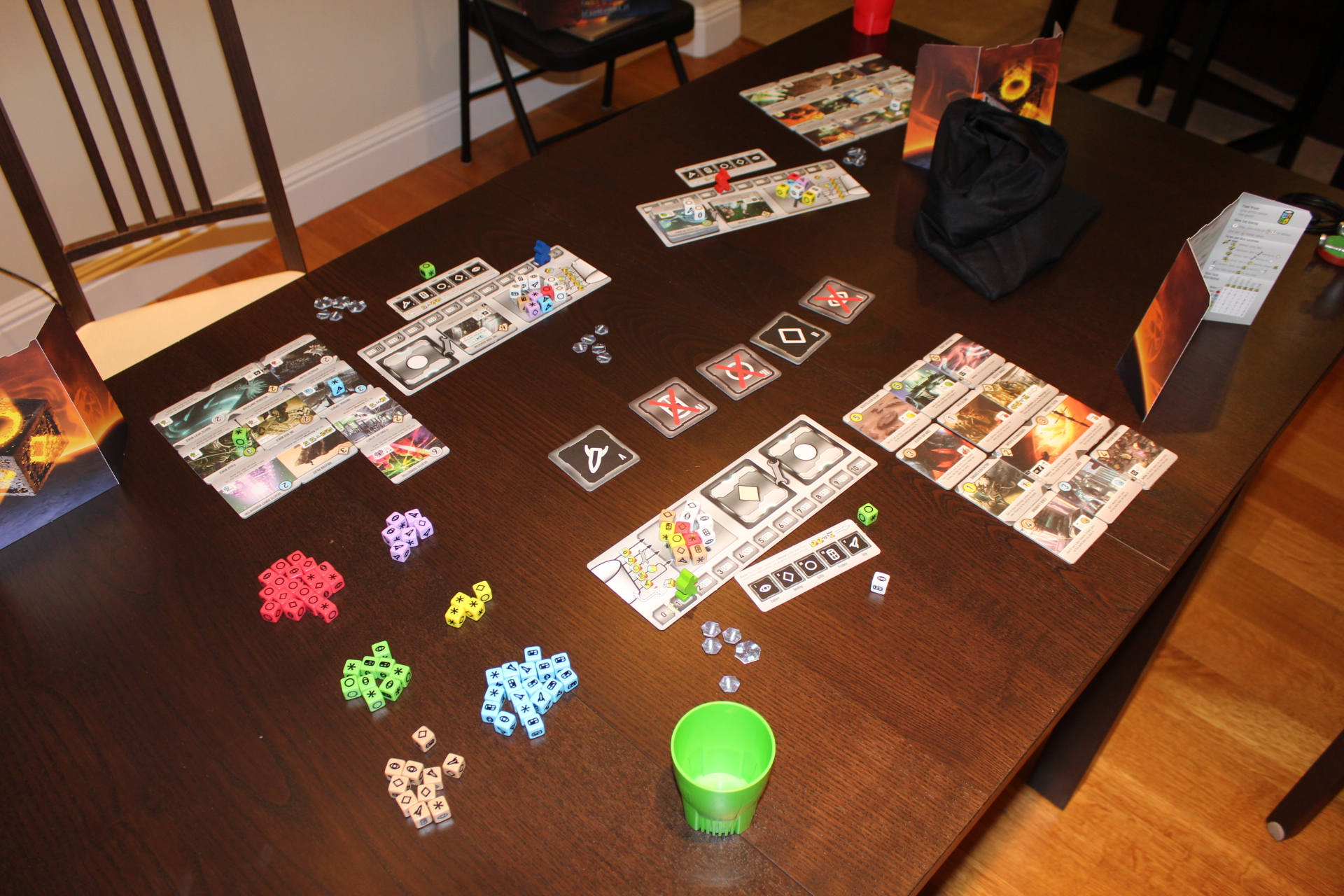 - Game is a huge pain to set up / put away. 111 custom dice, 55 game tiles, 18 faction / home world tiles, just getting everything into and out of the box is a 5-10 minute endeavor, and I haven’t even started to explain it yet.