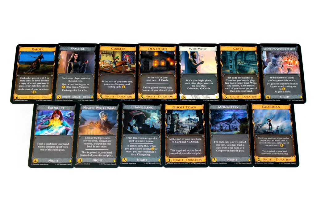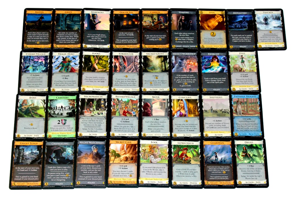 Generally speaking, you’re going to set Nocturne up very similarly to a standard game of Dominion. You can find those steps in many or all of my Dominion reviews. For Nocturne, the key thing is that you’ve got some dependencies, now, and those need to be enforced. You’ll want to set up your Kingdom normally: