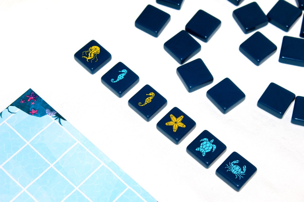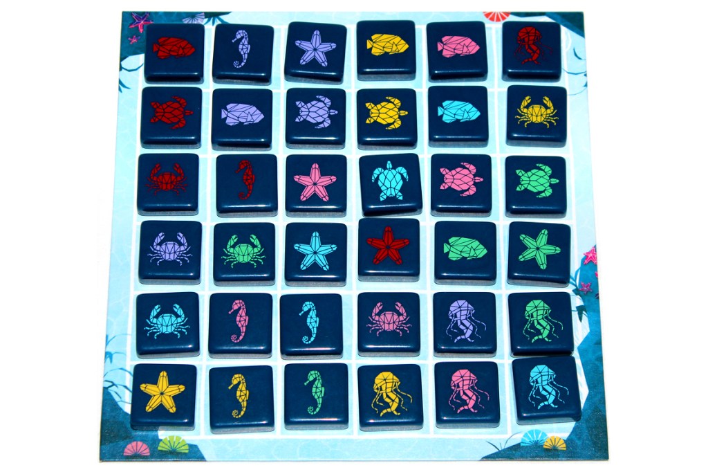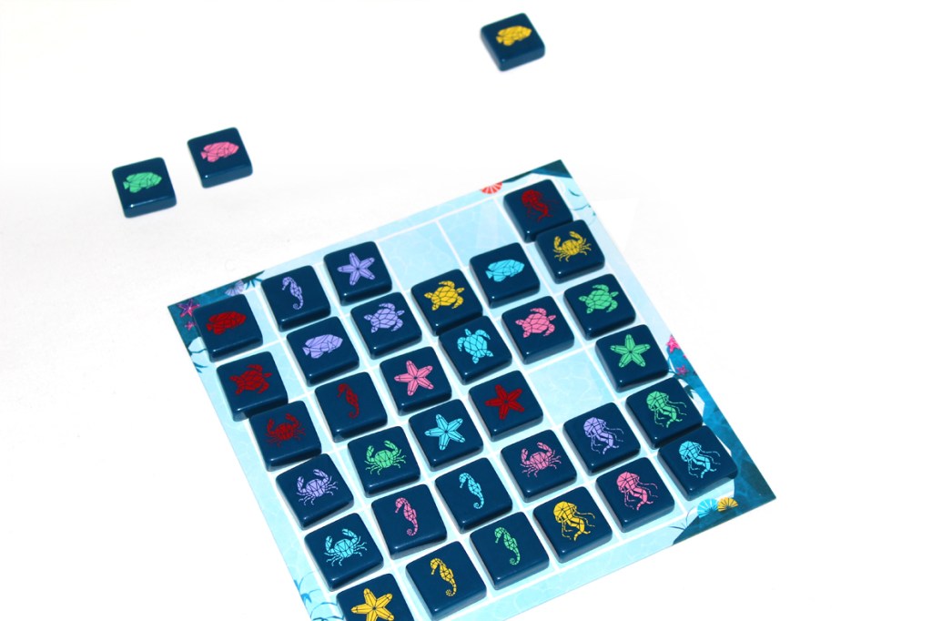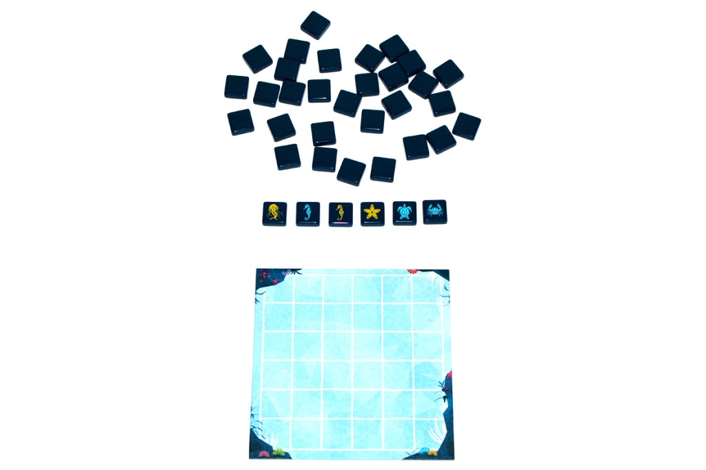 Set it in the center of the play area. Then, flip all the sea creature tiles face-down: