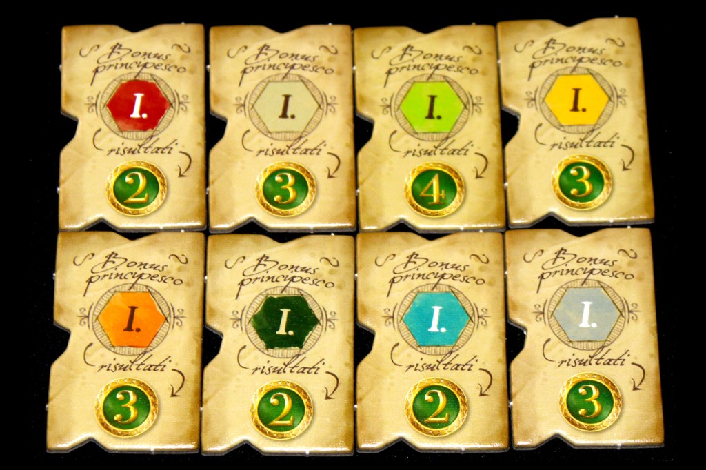 I’ve tried it at 2, 3, and 4, and I haven’t noticed a ton of differences generally. The turns are fast, there’s limited downtime, and I love those things. As player counts increase, the game will take longer (since the end of the game occurs when a player completely depletes their tiles), but that happens with a lot of these titles. It’s not too much longer, in my experience, either. The one thing to watch out for is that less-common tiles are fairly-evenly represented in the center, but they’re less common in player stacks. This means that if you get a rough random draw, it might be a long time before you see any Inns (my only Inn was, in my last four-player game, the absolute last tile in my stack). Also, if a good tile gets flipped in a four-player game, you’ve got almost no chance of seeing it, which can be a bit unfortunate. The real issue comes around with Bonus Tiles; in a four-player game, it’s possible to get very much shut out on the extra Region Cards or the extra tile storage, which can make your game really challenging. The tiles don’t scale with player count, which is odd; there are just always five of each. That said, I’d say I have no real problems with larger games of Castles of Tuscany, but I definitely like this a lot at two.