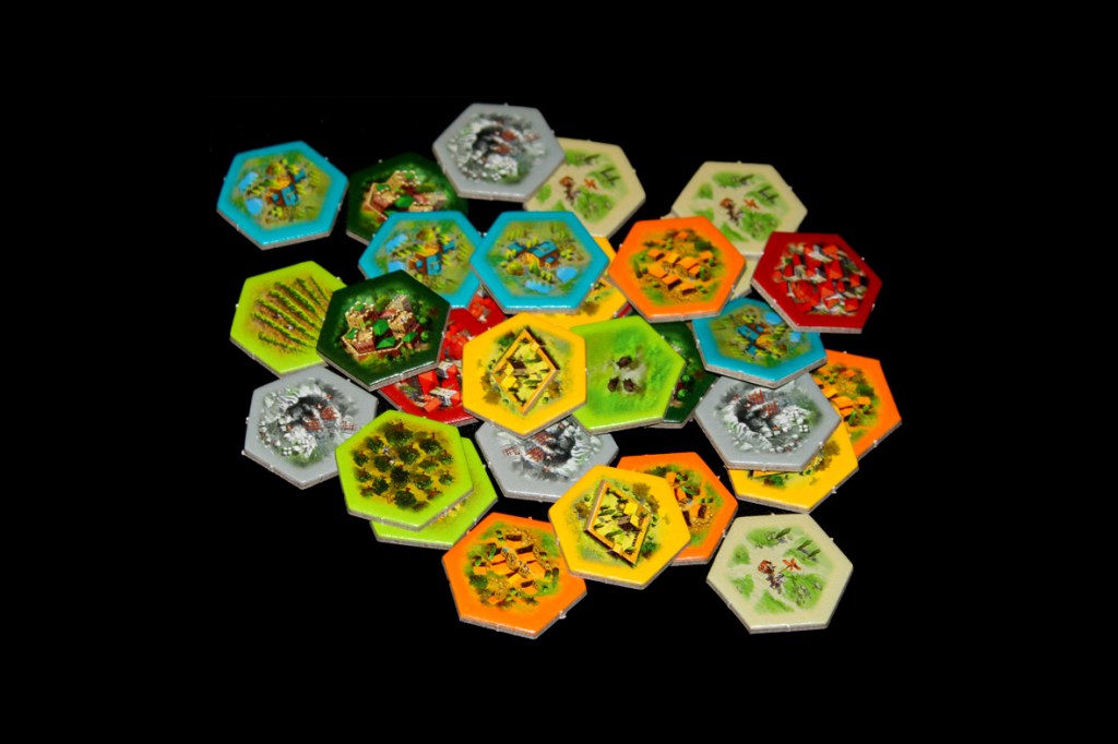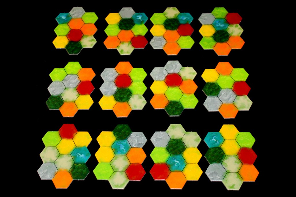 To finish up, flip 8 of the beige hexagons so that they’re face-up. You should be ready to start!
