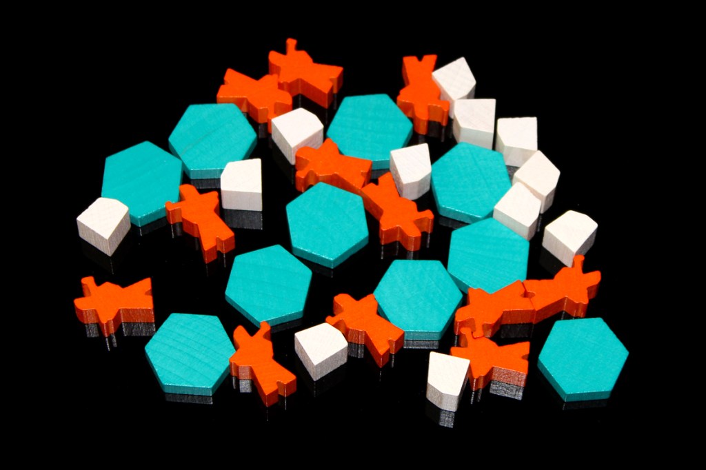 Set the marble blocks, workers, and blue wild hexagons nearby, as well:
