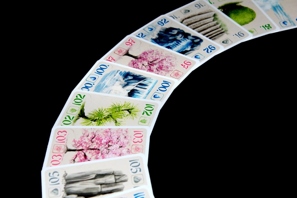 A game of Ohanami isn’t too rough. It’s played over three rounds, as each player builds up to three different gardens by playing cards. Let’s talk about each round, then scoring!