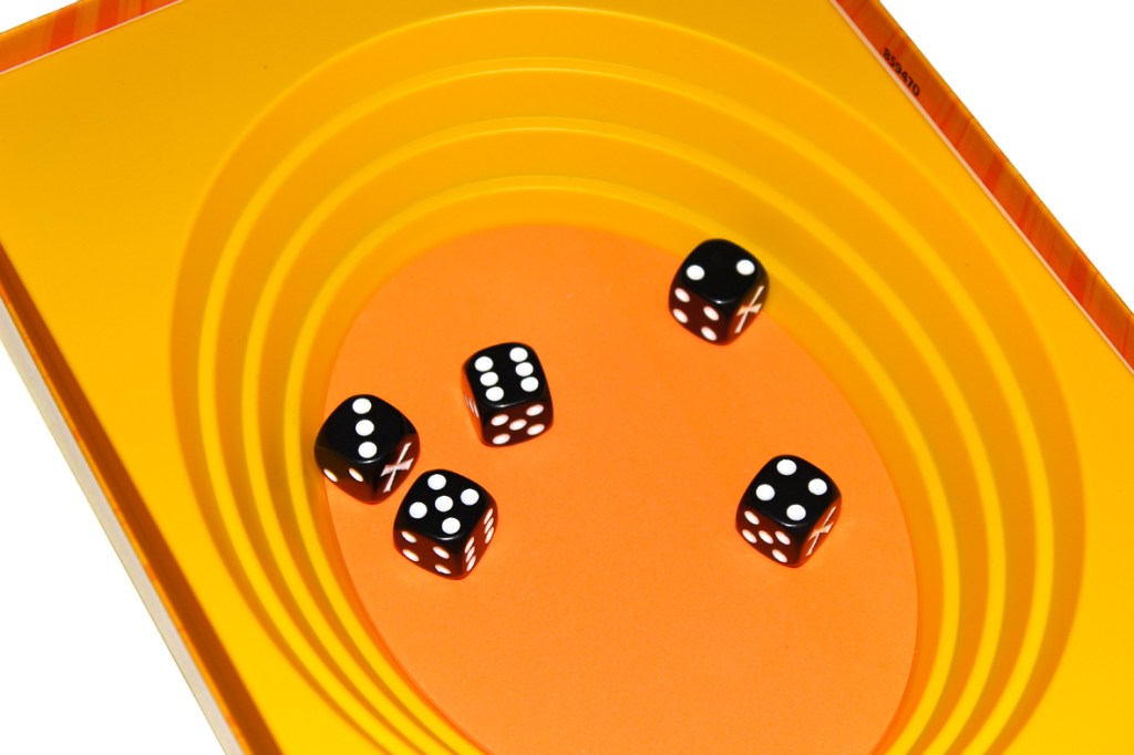 - I have no idea, but whatever I am doing seems to be working. It’s hard to have too much “strategy” in a game like this when you’re just throwing dice, but I do win a decent amount of the time. I think a major factor is trying to make sure that you don’t let the die bounce out of the box bottom when you throw it; beyond that, a lot of it comes down to luck? Skill? Something between those two.