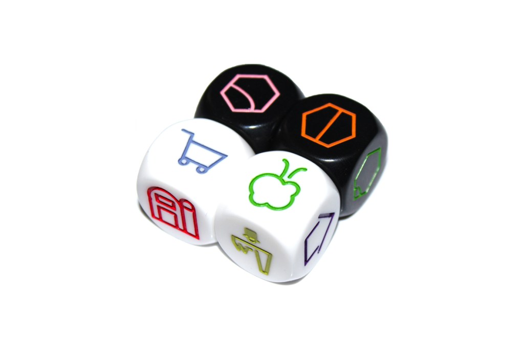 You may use any two of the dice rolled for construction and add them to your city on any empty hex. Different buildings will earn you different points, based on their connections (by road) to other buildings. Roads help you connect buildings, fulfill certain scoring criteria, and get a bonus at the end of the game.