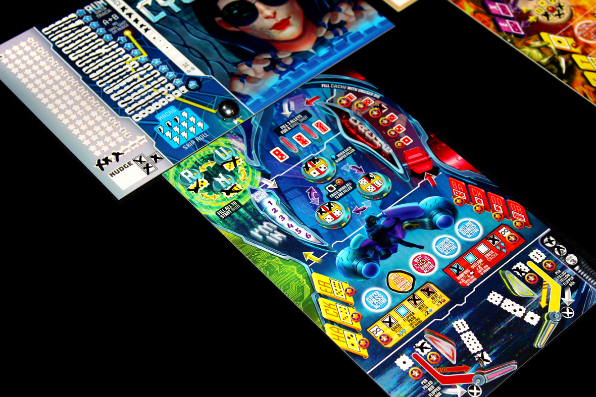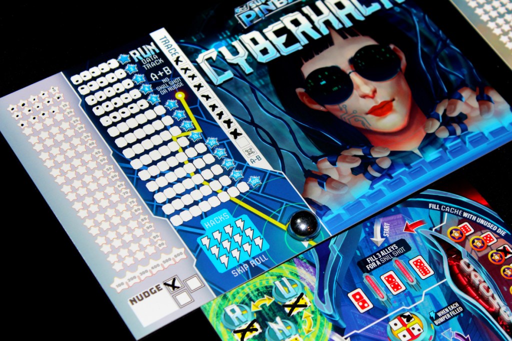 Welcome to Super-Skill Pinball: 4-Cade! To start, you’re not going to need any coins but you’ll need to select which pin you want to play. Will you take on some Feats of Strength at the Carniball? How about making runs against the dreaded corporations in the world of Cyberhack? Do you have enough magic at your disposal to claim the legendary hoard as a Dragonslayer? Or perhaps you want to leave it all on the disco floor in Dance Fever? The pinball world is your oyster with this roll-and-write, as you’ll roll two dice and keep one to move your ball up and down the pinball board, collecting points, hitting bumpers, and activating all sorts of exciting features. Out of options? Don’t worry, everyone loses a ball or two; that’s why there are three rounds! Will you be able to top the charts with the newest high score?
