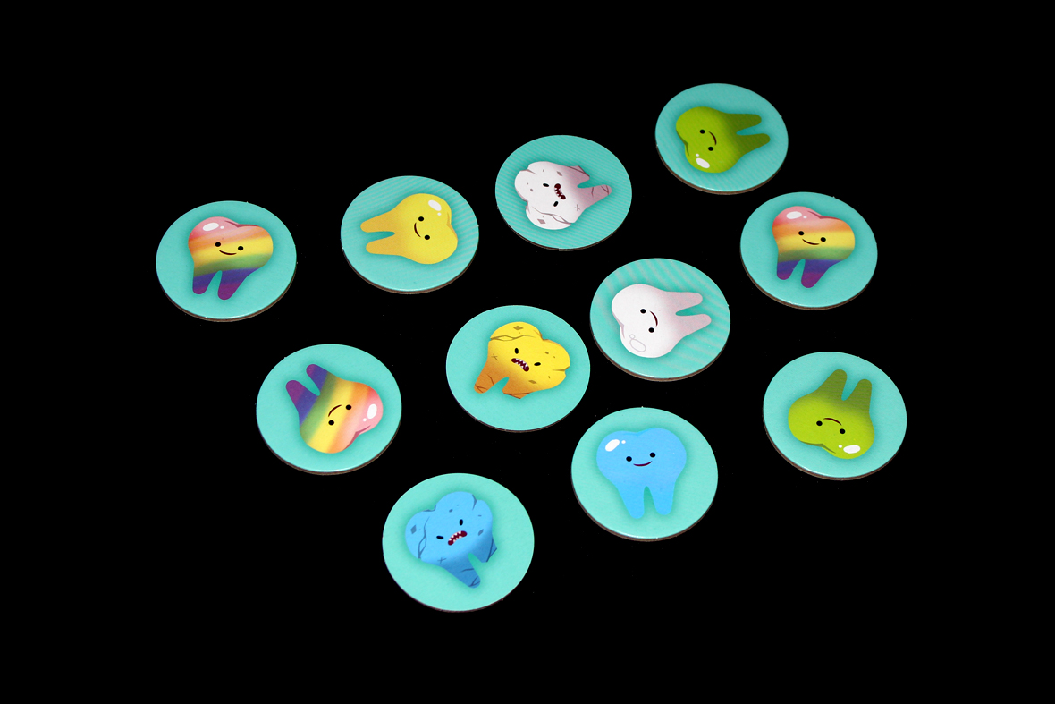 - I like that they went the Nine Tiles route of having the teeth tiles be double-sided. It adds a very good challenge; each tooth color has one bad tooth of the same color and one bad tooth of a different color, meaning you need to try and remember which tiles are which if you want to get your Tooth Board completed the fastest. It would be a bit too simple of a puzzle otherwise, so I think the extra complexity really makes it fun.