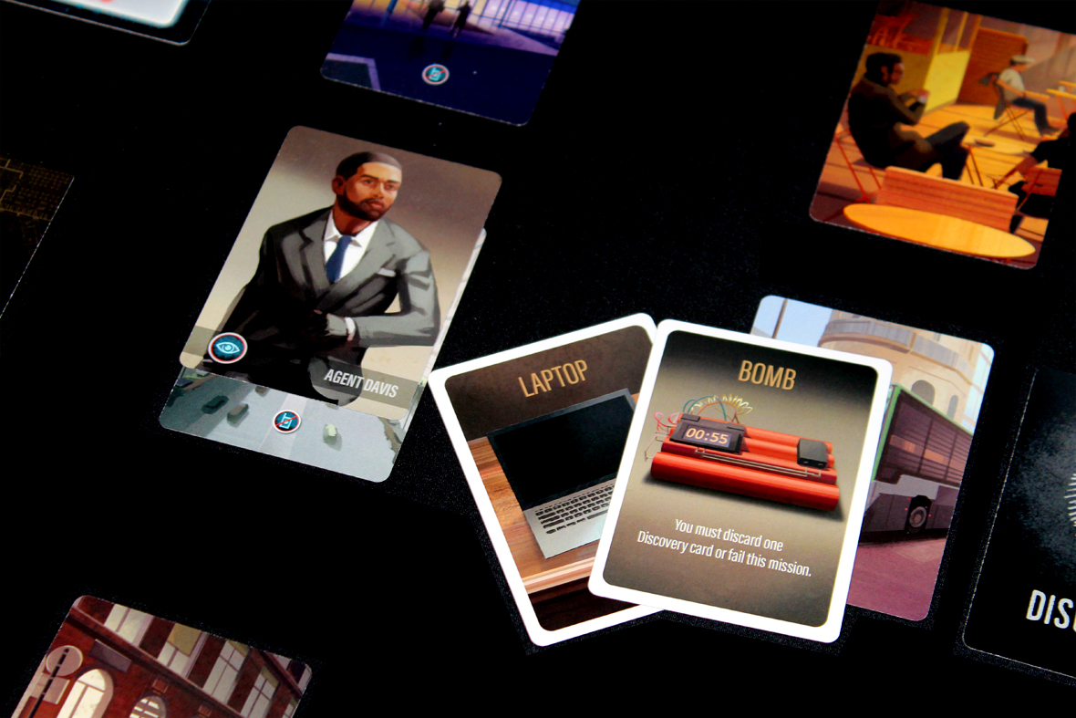 After moving, draw the Discovery card next to the Location, if one is available. If it’s a Bomb, you must resolve it immediately, use the Bomb Defusal Kit, or … lose.
