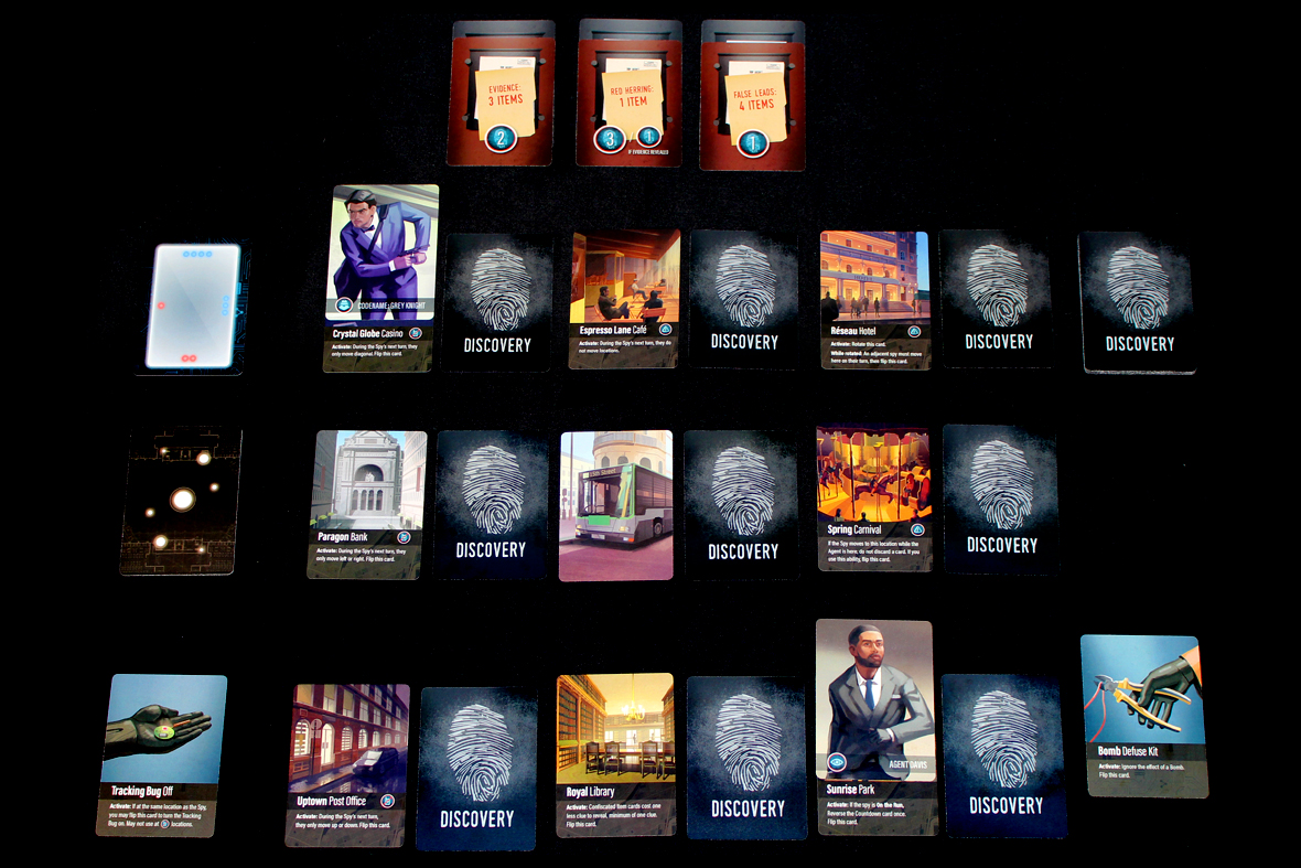 - If the Spy’s On the Run, you need to manipulate their movement a bit better. You need to prevent them exhausting your Countdown Card, so trying to get them to move to spaces with 2 Discovery cards on them is optimal, especially if you already have all the Evidence you need. Don’t let them run out the game clock on you!