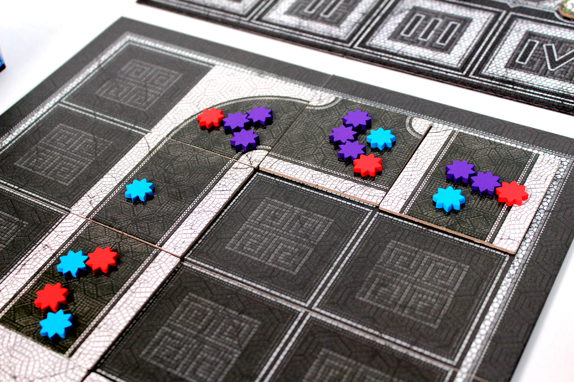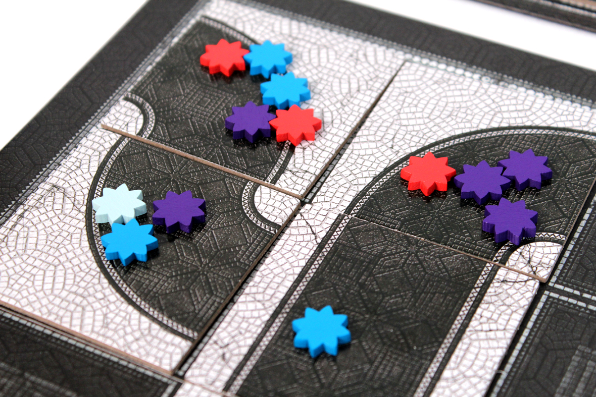 To start a round, reveal four tiles from the top of the tile stack and place them face-up on the Altar Board. Don’t rotate them when you reveal them; the orientation should be randomized by the shuffle.