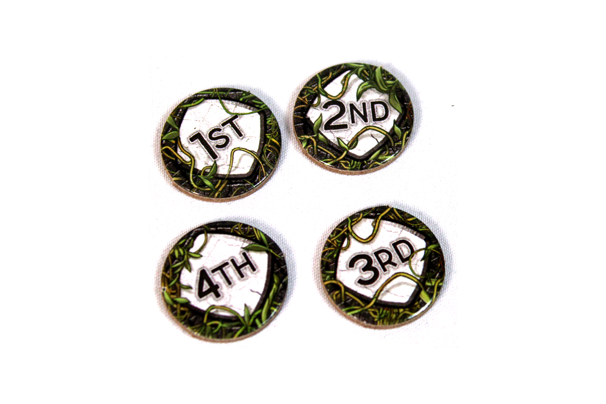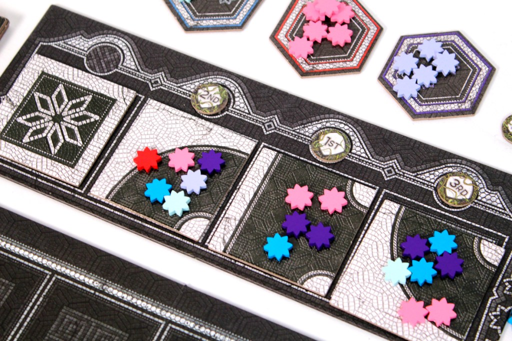 Once the Bidding Phase is complete, it’s time to determine tile winners. First, assign each tile a resolution order based on the number of flowers on it. If a tile has 0 flowers on it, discard it. If there’s a tie for number of flowers, break ties from left to right.