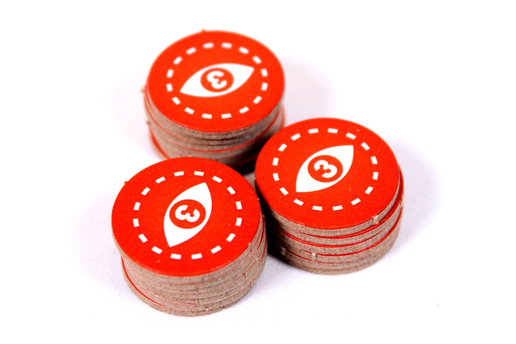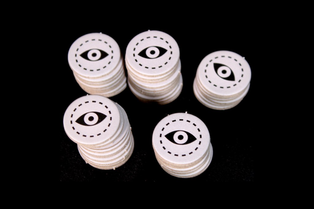 Each player draws 2 and keeps 1; put the remaining back in the box. To finish out, place the Viewer Tokens nearby: