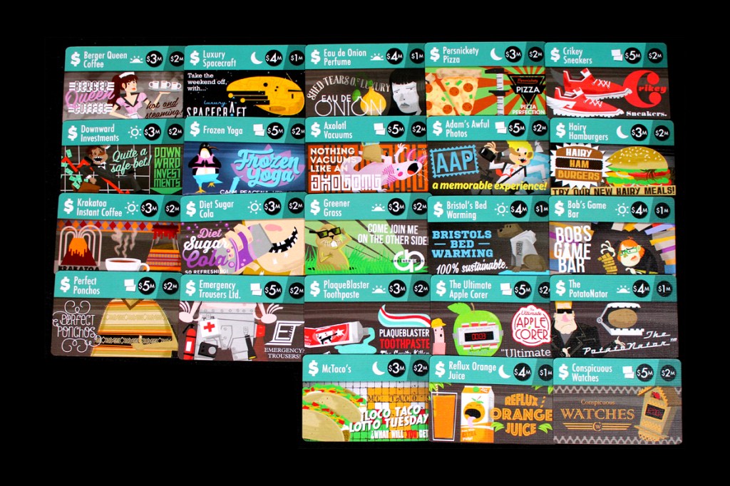 - I appreciate how specific all the Ads are. Almost upsettingly so. Several of the Ads are very good, very funny, or just very specific. It’s part of the overall sense of humor of this game, and I’m a big fan of it. It almost makes me want to pick up specific Ads, just for the humor value, but then, I remember: strategy.