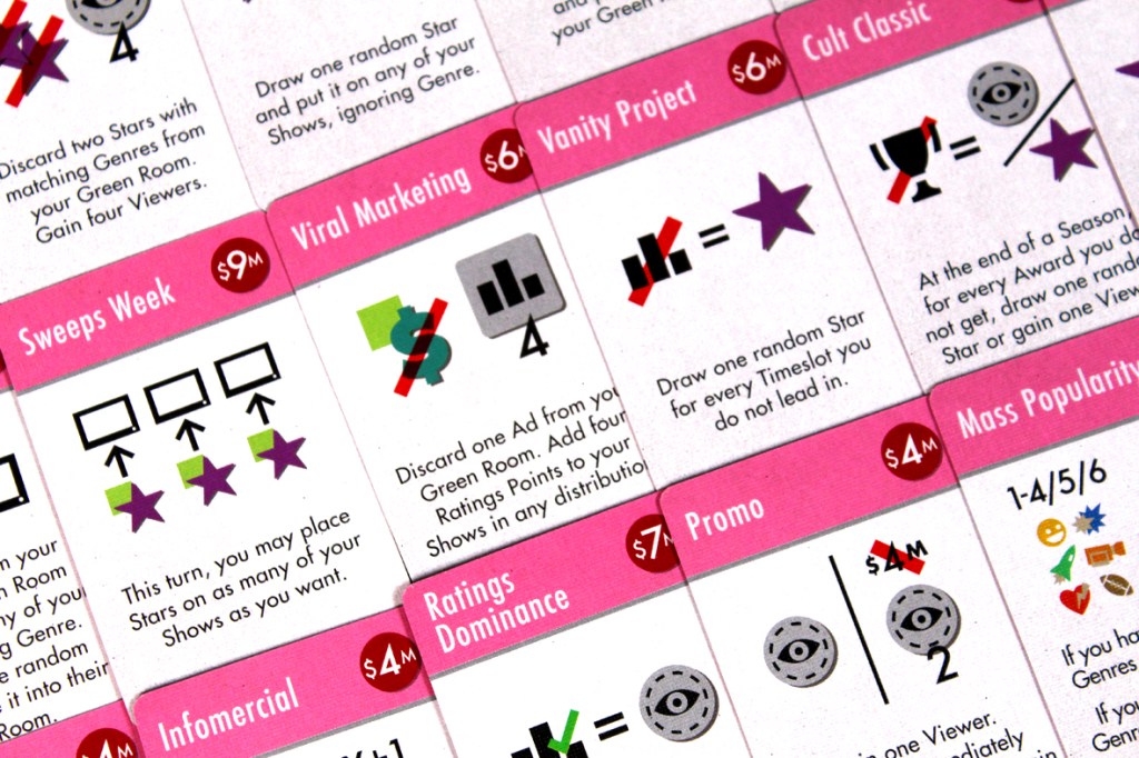- Specifically working your shows and time slots so that you can sell Ads at their peak value is a great way to quickly pull Network Cards. You are totally allowed to sell Ads to buy a Network Card as soon as you pull ahead in Ratings; the Ad is sold, so it won’t matter if your opponent beats you next turn. Heck, you can sell Ads before you Develop a Show if you’re worried that the new show will open to lower Ratings than the previous one (and you still want to do that; it might be useful for Genre Bonuses). The when of advertising in this game is just as important as the what.