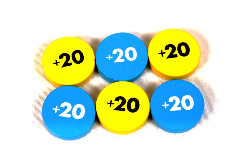 Place a ratings points token on each of the 0 spaces on the three Time Slot Boards. They should be +20-side down.