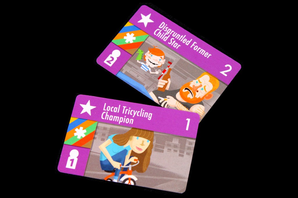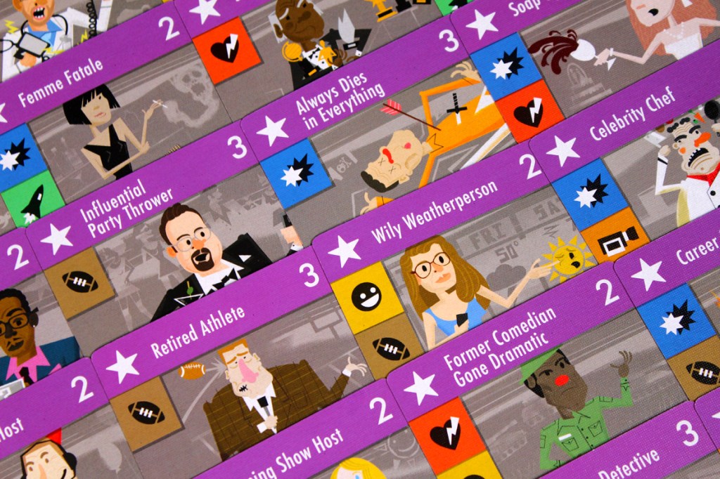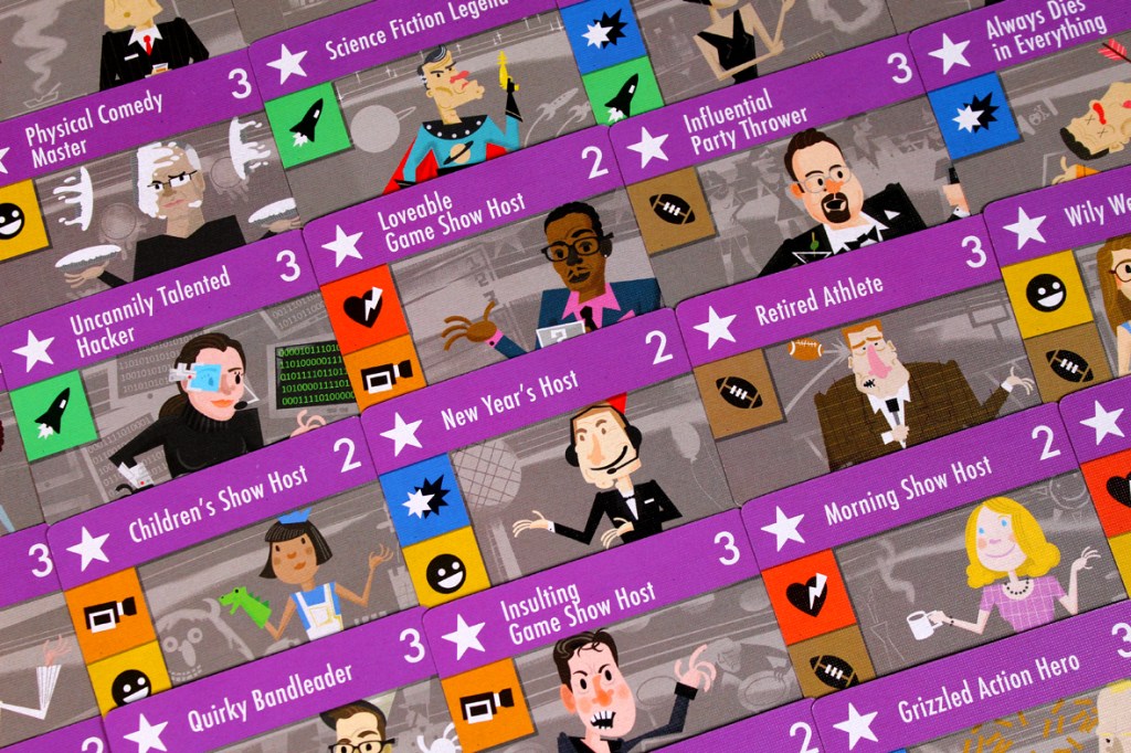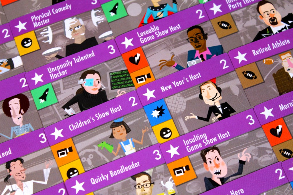 Now, you may attach as many Stars in your Green Room to one show as you’d like, following one rule: the Star must have a matching Genre Icon on their card to the show you’re putting them on. When you attach Stars, you improve the show’s ratings, moving the Ratings Token up the same way you did during the Develop a Show Phase (gaining Viewers as you pass eye symbols).