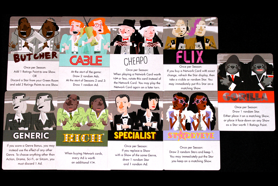 - Getting a bunch of stars can be useful, but you need to have the right shows for them or the Network Cards to work around them. Sitcoms tend to work well for getting many stars into your Network as possible (that’s their Genre Bonus, two free Stars). That said, going deep on a limited number of shows means that you can very likely end up with Stars who cannot be placed on any of your Shows. Thankfully, there are a few Network Cards that will allow you to ignore Genre on Stars, meaning there’s always a backup plan. Going deep on Stars is good for your Ratings (and consequently good for Ads), but you should try to make sure there’s an alignment there, if possible.