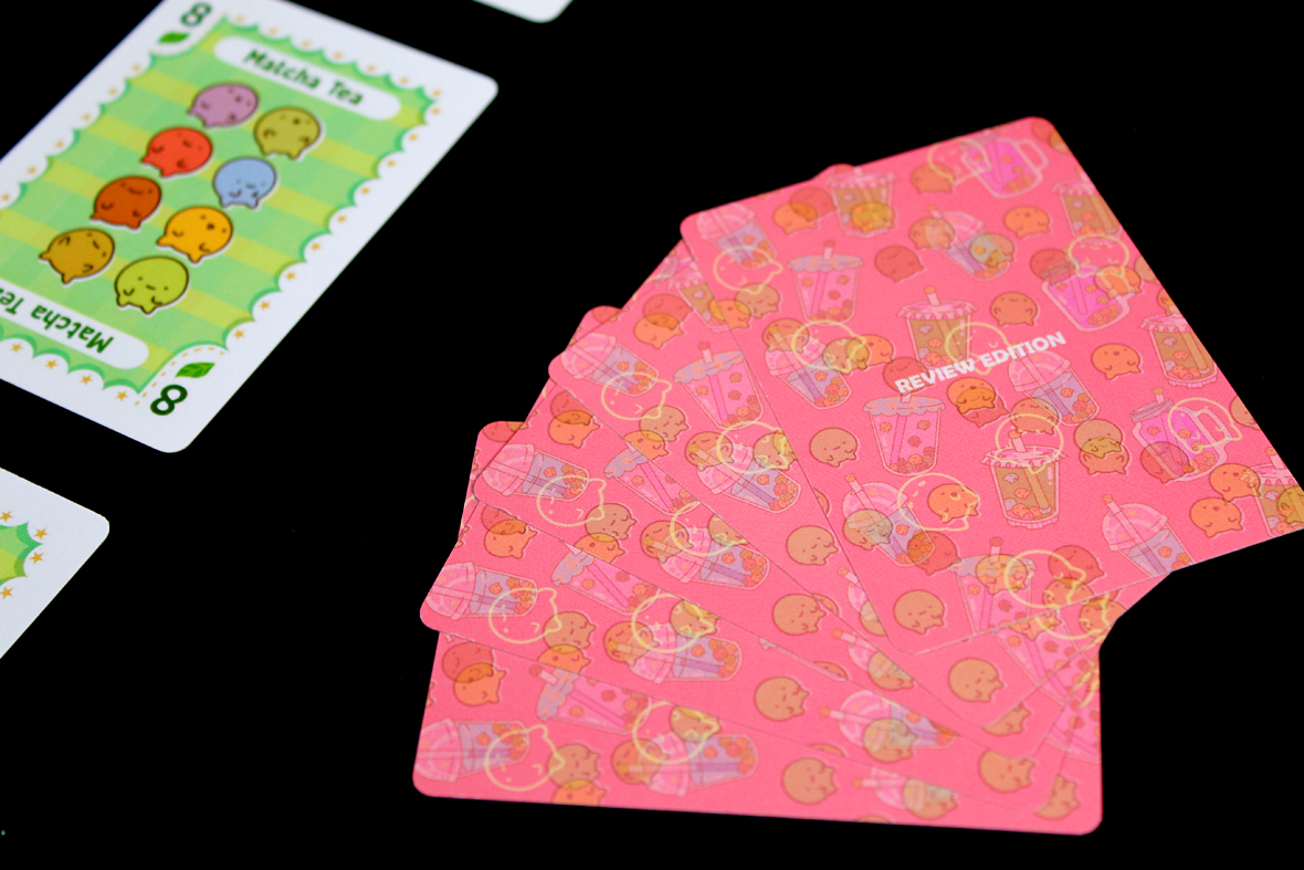Once a player has five cards in their scoring area, the round ends after their opponent takes their turn. Then, you move on to scoring. To score, you may choose up to six cards in your tableau. That set of six cards is scored (as any good boba tea should be) along four dimensions: