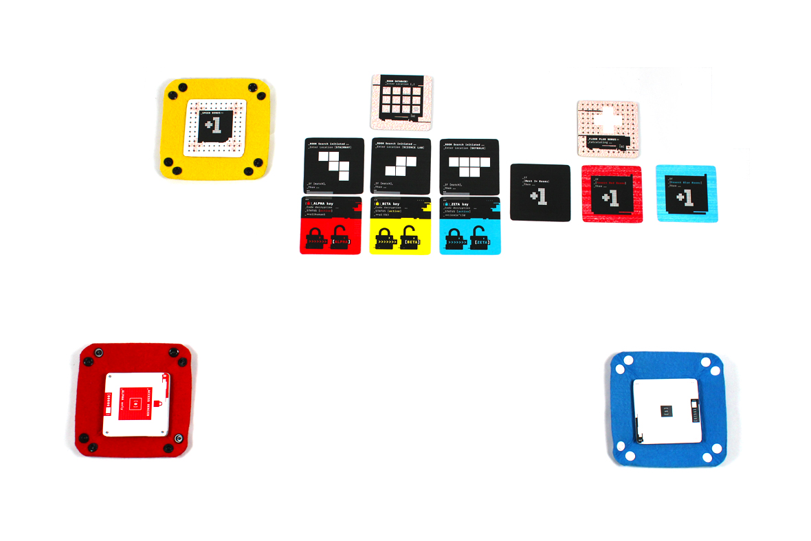 To start, each player gets a deck of floor plan cards. The cards have a [0] or a [1] on the back to denote which deck is which.
