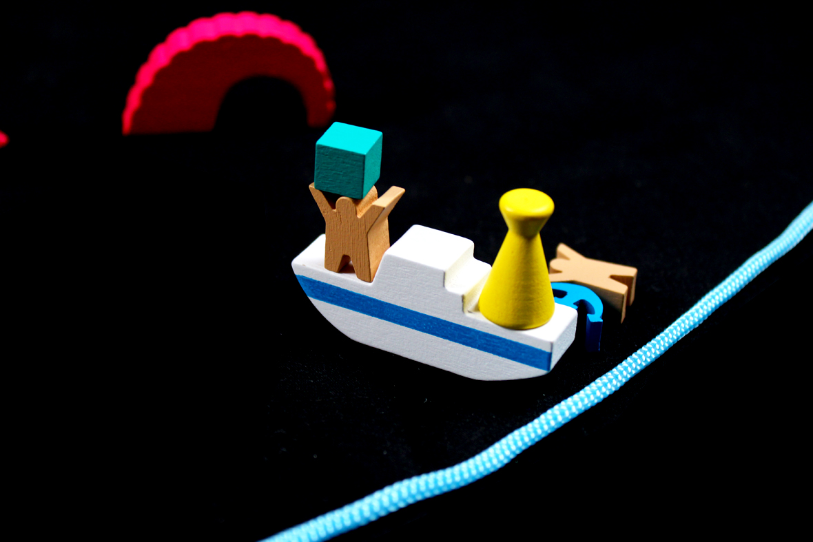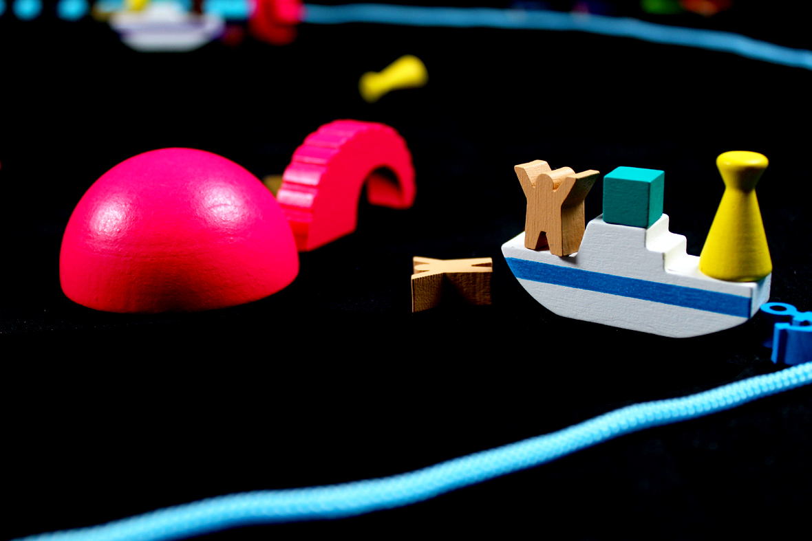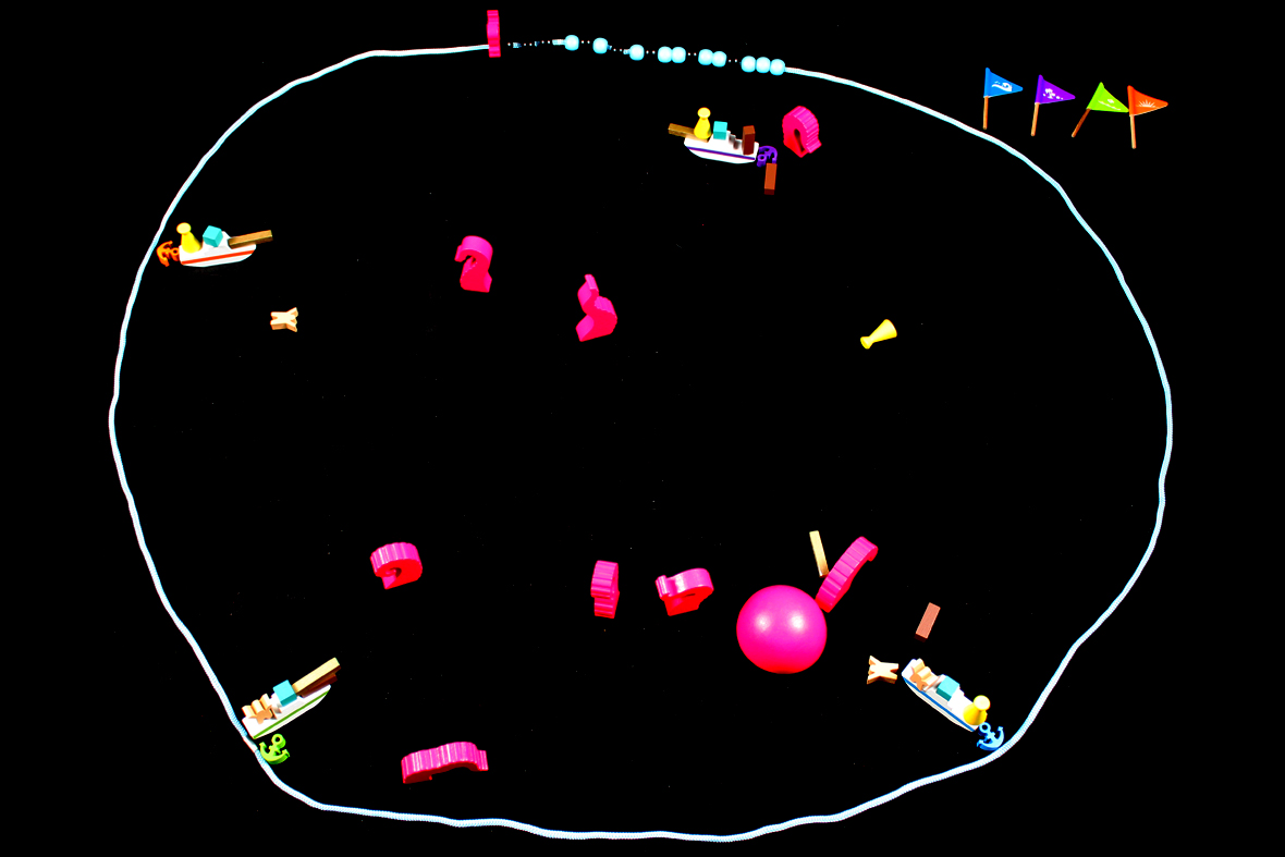 On your turn, you may choose to flick your boat’s anchor instead of flicking a treasure. This allows you to navigate your boat elsewhere in the ocean. To do so, just hit your anchor somewhere. Wherever it lands, place your boat so that it’s touching your anchor. If your anchor leaves the Ocean Area, place it next to your boat; you do not navigate this turn.