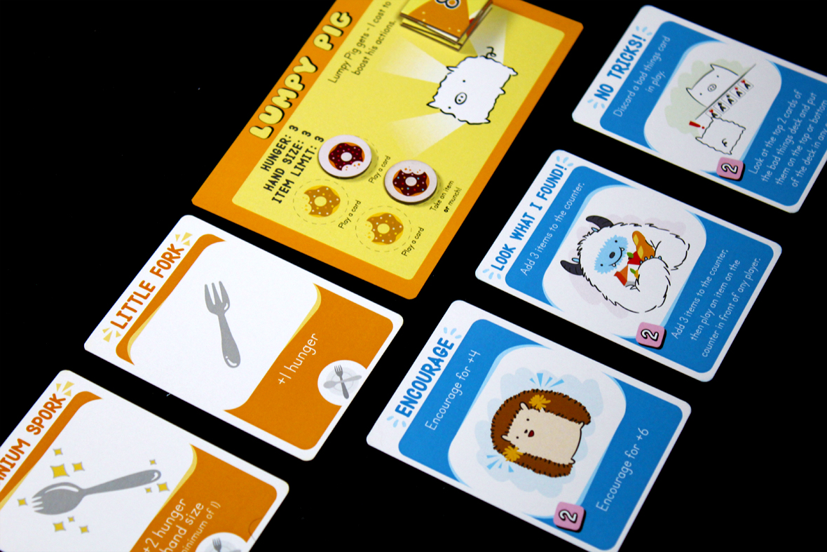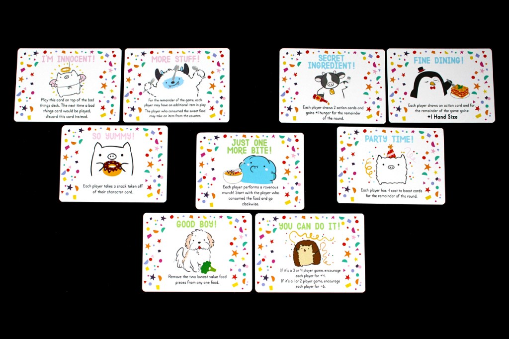 - Overindexing on one type of food is actually a pretty good idea; you can dump items that aren’t useful once you’ve cleared that food. This also can help you with Bad Things cards; certain ones will give you -3 Hunger on a specific Food Type; if you’ve already cleared that one, the Bad Things card is essentially a no-op, which is great. Better to have that than something that actually messes you up.