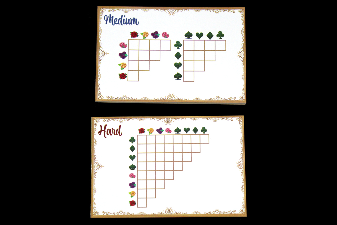 - The scoring system feels like a remnant of an older iteration of the game, frankly. I think this problem is kind of emblematic of the gap between Paint the Roses and other, similar games that I enjoy. Scoring systems don’t really do anything for me unless the score is directly tied to you winning or losing the game. I understand that this allows you to enter a game state where you lose the game, but since you got so many points you actually perform better than players who won (since losing only costs you 10 points), but that seems … silly to me. I don’t really invest in improving my high score between games, and my game group largely plays the same way. The scoring system, as-is, feels like it doesn’t entirely jive with the “you lose if the Queen catches you”, mechanically. I think it will likely appeal to folks who do want to iterate on their scores and compare them, though.