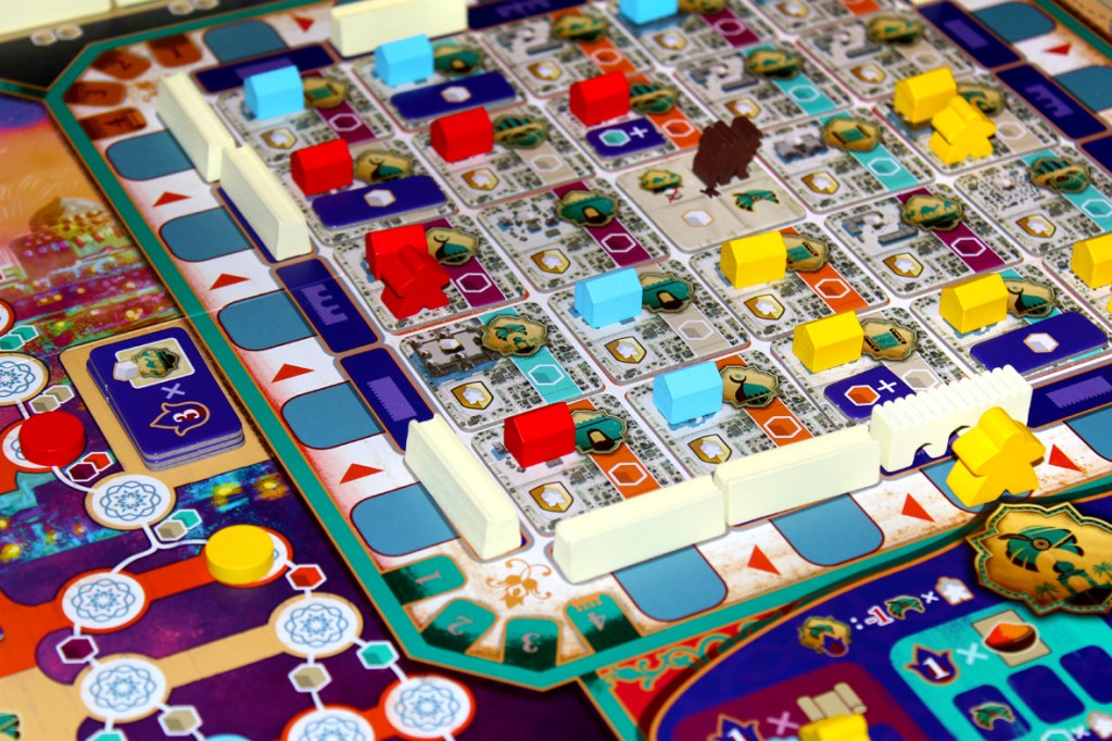 - The systems of the game build on each other nicely, though, and I appreciate that. There are multiple paths to success, from using resources to build walls to gain Influence to get Caravansary cards to get Favor to score big at the Palace to using resources to make headway on the Marketplace and get scrolls to gain breakthroughs to reduce the cost of Mosque track actions to score a ton of points that way, or any combination of those things. The system is pretty modular, and it supports inputs of resources from multiple different avenues. I really like it!