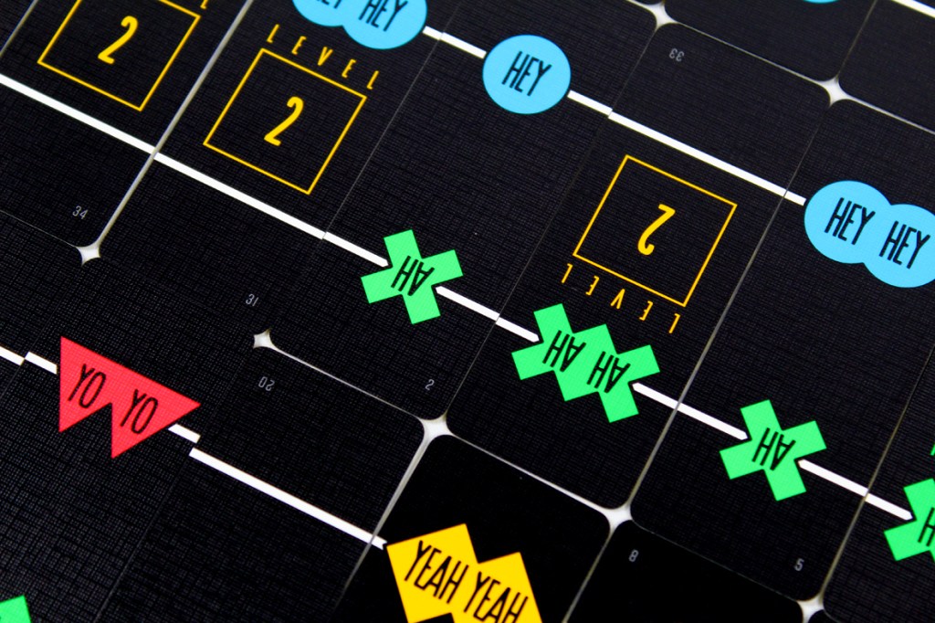 In Hey Yo, players try to keep to the beat and keep their rhythm unbroken as they play through challenging, real-time music challenges. Basically, a round starts as soon as a player says “Come on, DJ!” and pushes the button on the speaker. All players can immediately look at their cards.