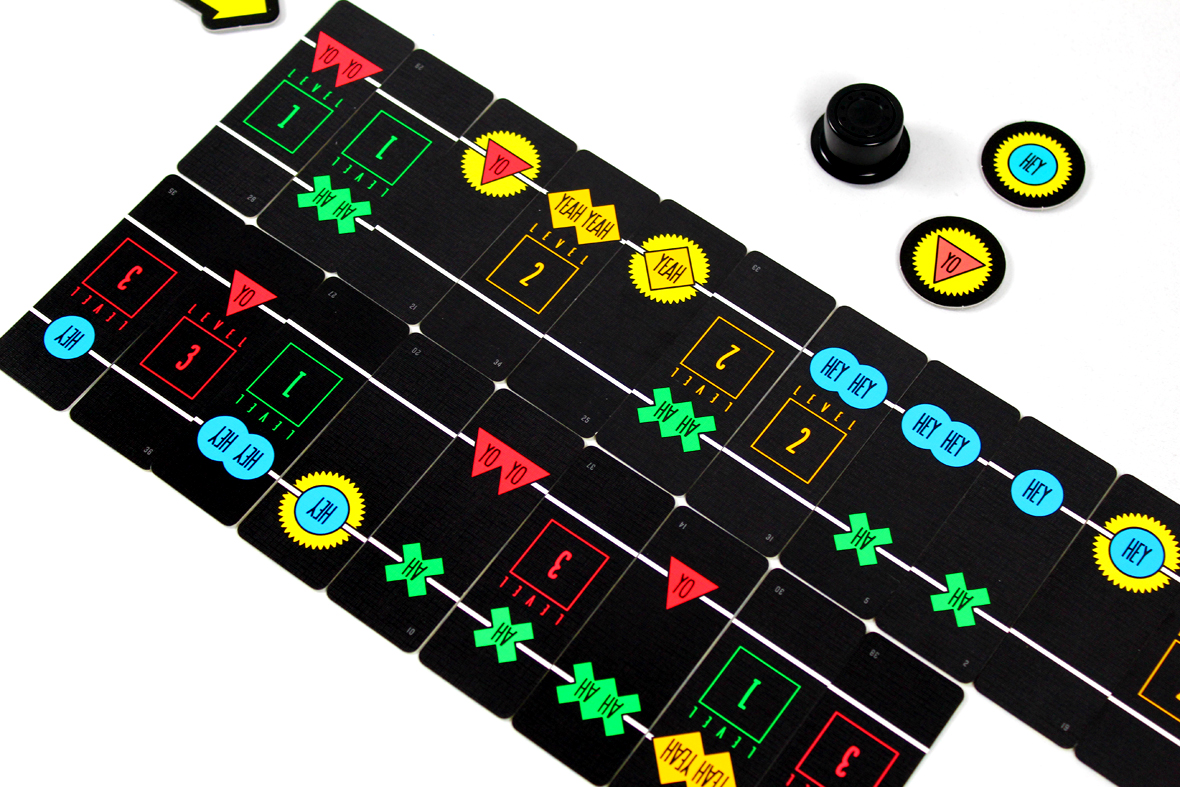 In Hey Yo, players try to keep to the beat and keep their rhythm unbroken as they play through challenging, real-time music challenges. Basically, a round starts as soon as a player says “Come on, DJ!” and pushes the button on the speaker. All players can immediately look at their cards.