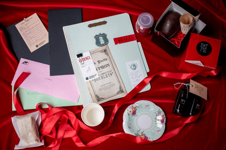 The nice thing about reviewing a bunch of escape room / mystery box games is that you sometimes get to try additional new ones, like what we’re covering today: The Interrogation of Alice, from Nordo’s Room Service. These boxes are a bit more luxe than what we usually cover here at What’s Eric Playing?, and you might notice as a result this is a fairly photo-light review. There’s a lot to discover in the box, and I think it’s more fun if you get to dig through and find what’s in it without me spoiling stuff. So there’s that. Also, we ate all the food that came with it pretty quickly, so, beyond the puzzles themselves, there’s not much to photograph. Them’s the breaks, sometimes. If you’re wondering, the game comes in a fairly nondescript shipping box, so I’m relying on their photos to illustrate the components and such. Anyways, let’s get into the review.