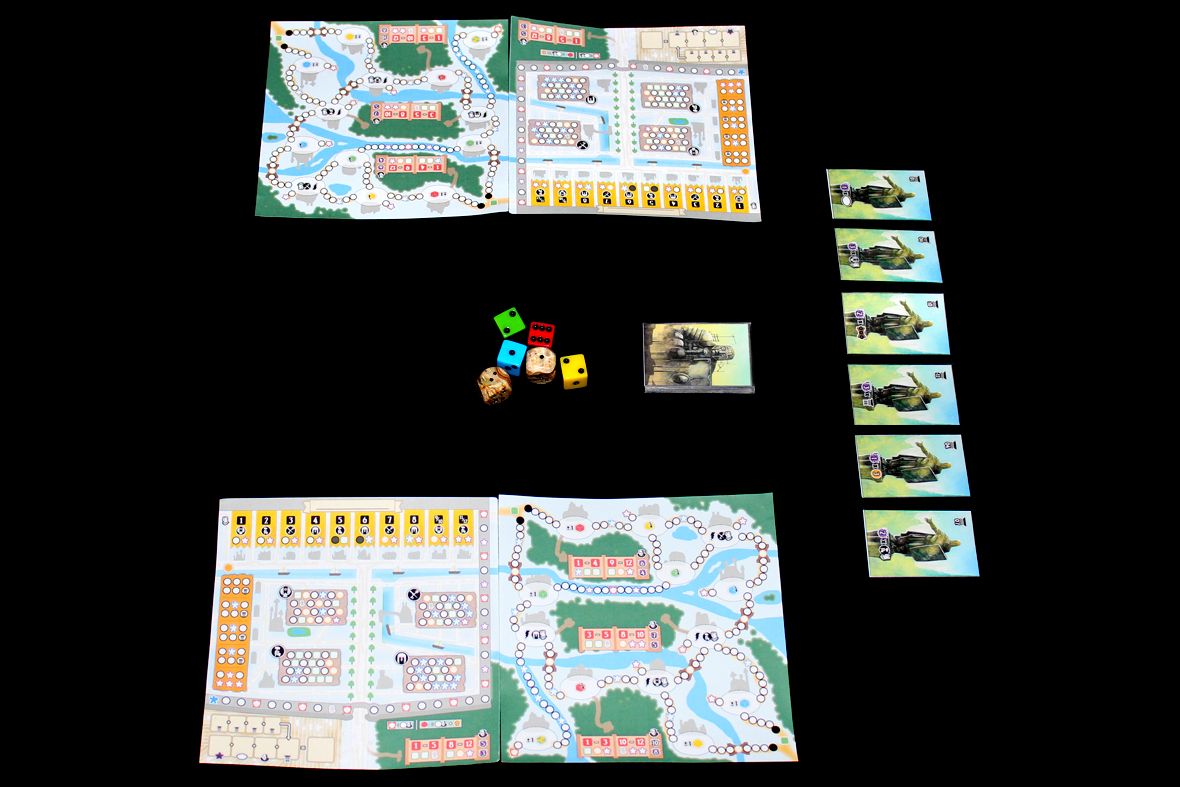 - This has the nice Valeria thing where you get both the values of each die and the value of the sum, and that’s good! You end up getting a lot for each roll. If you play your cards right, you can get up to six Guild Track spaces filled in per roll. That’s a nice feeling of progression for players, during the game. Plus, you usually get a good amount of rewards from each roll.