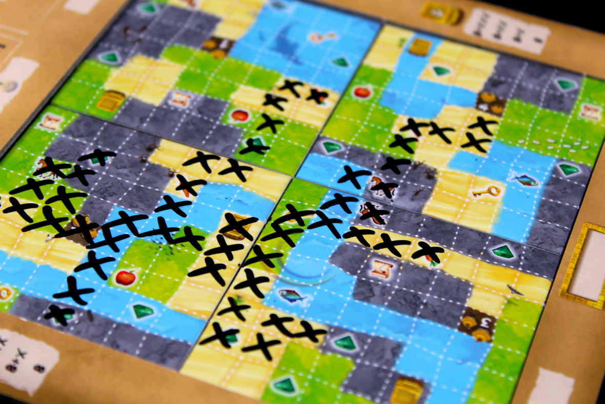 - I think putting an X on the first Village makes players think that they can put Xs on other Village spaces, which can be confusing. The rulebook explicitly forbids putting Xs on other Village spaces (and how would you? It doesn’t match any Terrain type.), but I got confused nonetheless in my first game, so I imagine other folks can, too.