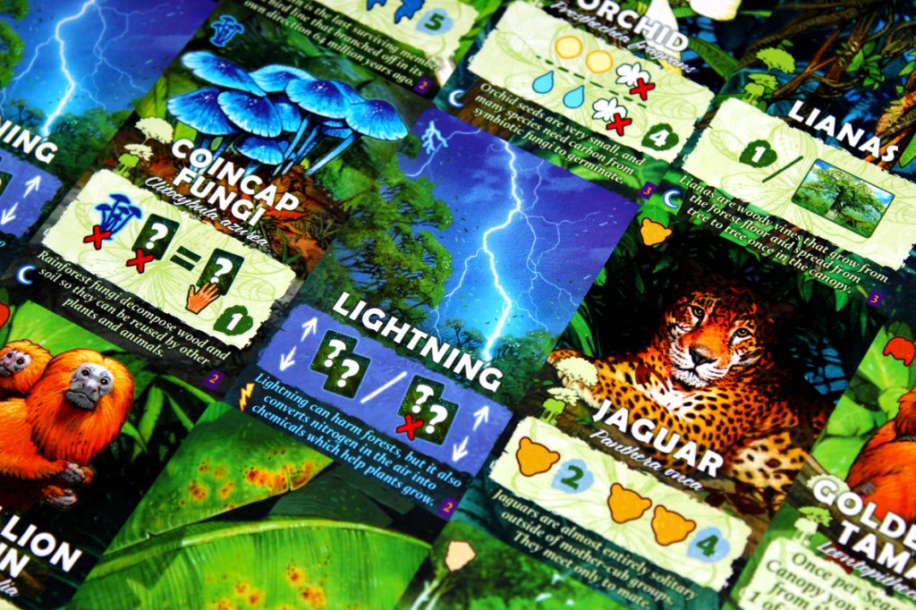 Shuffle the standard Rainforest Cards together, then remove ten cards randomly from the deck and return them to the box: