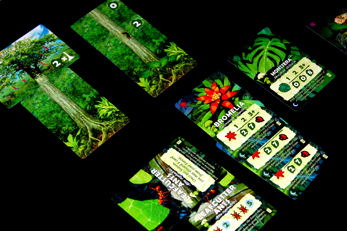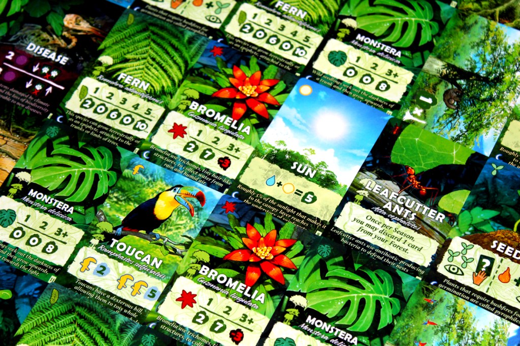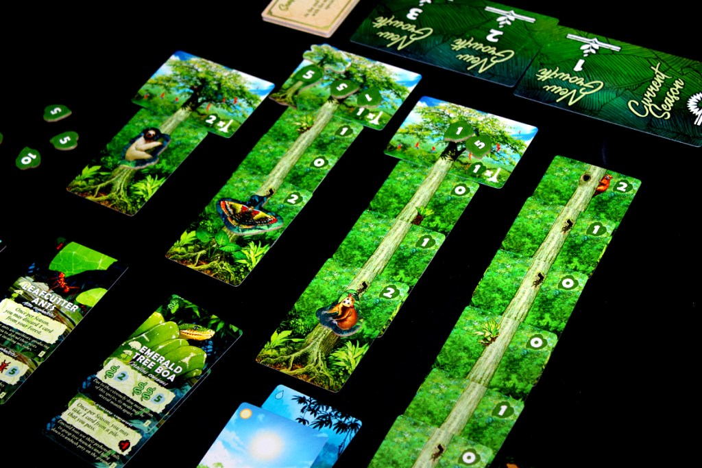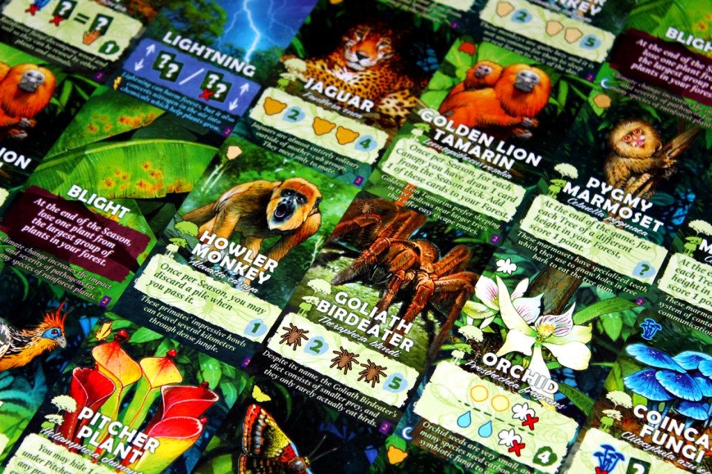 - The art is phenomenal. No shock; it’s Vincent Dutrait. There aren’t that many games that are willing to invest in just … a ton of green, and the whole game really pops! It looks great on the table, and the use of color makes the rainforests that players create feel extremely vibrant and alive. I’m a huge fan of it.