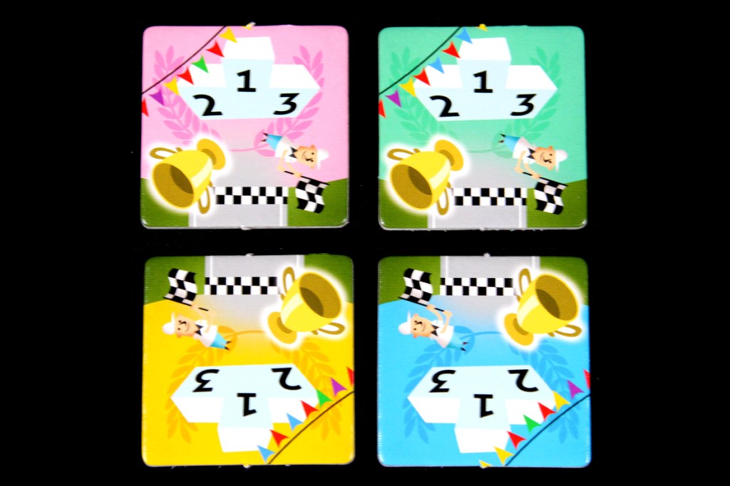 When you make it to the center “pit stop” tile, you must immediately take and reveal one of the face-down trophy tokens. The color of that token indicates the color of the start-finish space that you must return to in order to win.
