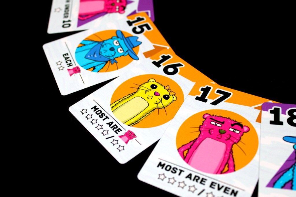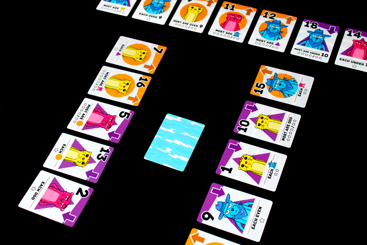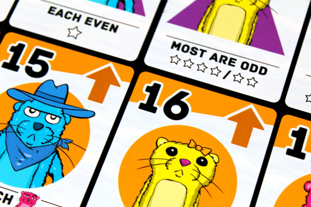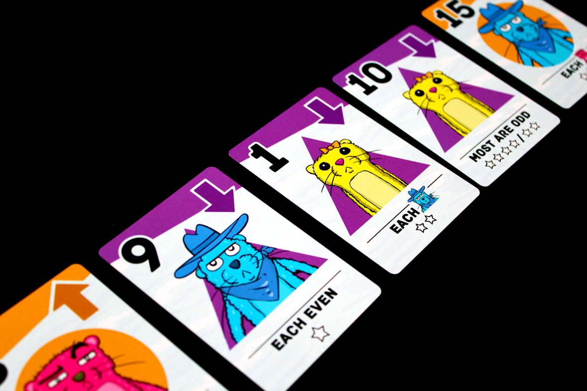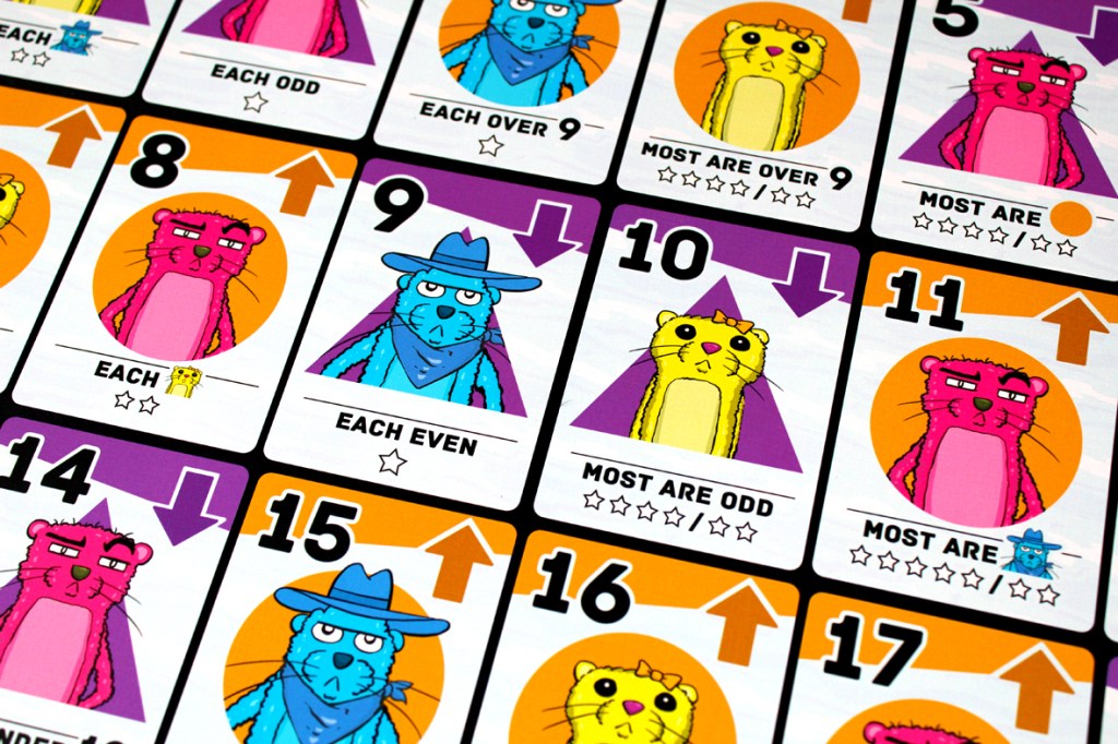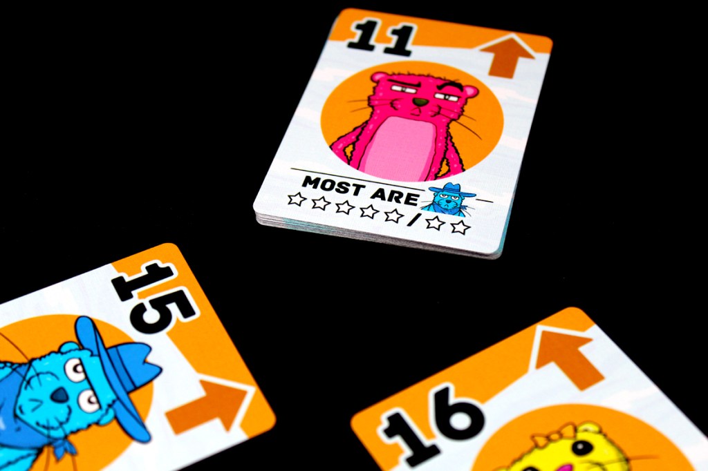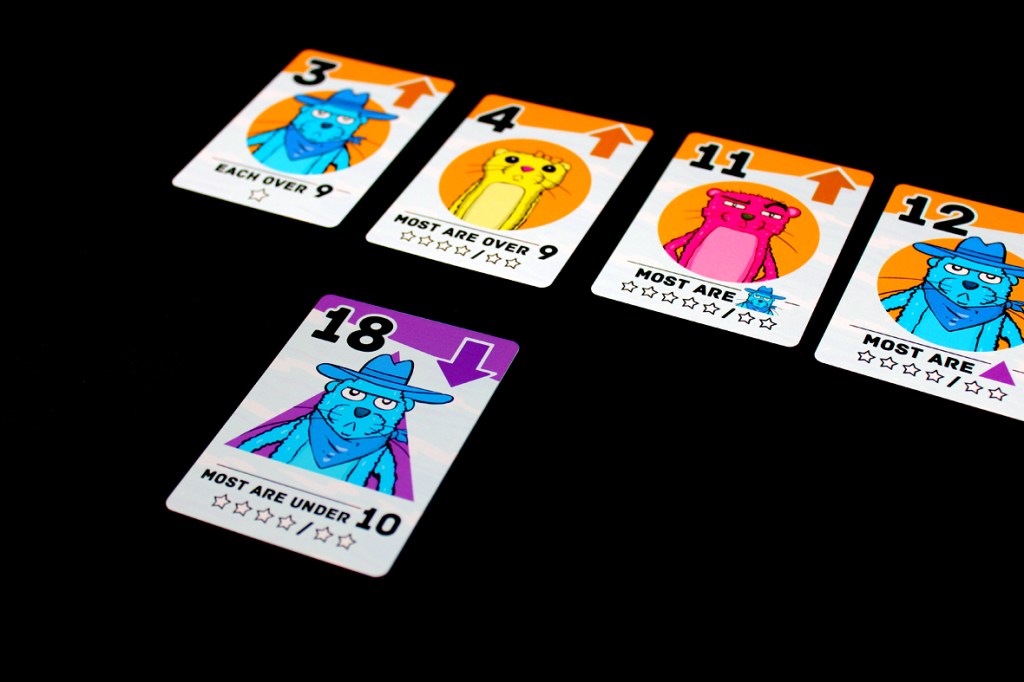 Once all cards have been played, each player scores the cards in the River following the criteria of the cards in their Den. This means if a card in your Den gives you 4 points for “Most Even”, you get 4 points if most of the cards in the River are even (and 2 points otherwise). Not the other way around. If there’s a tie for most (this can happen with Otter colors), you still get the higher point value.