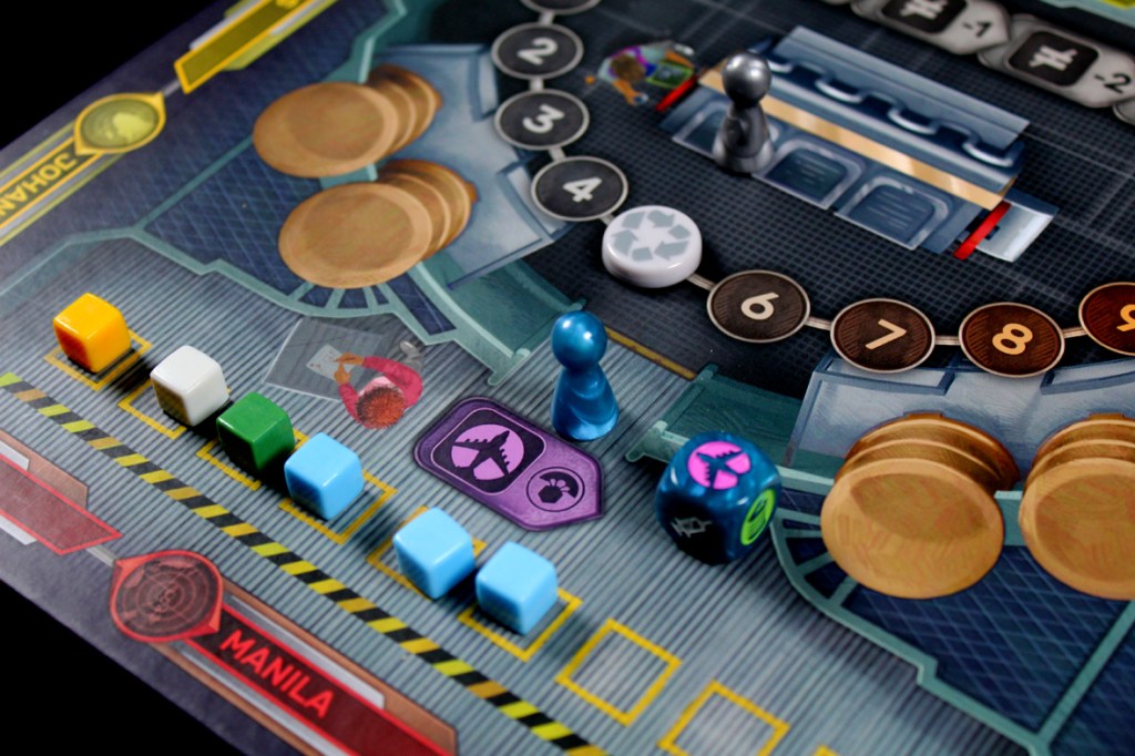 - Lots of great roles available for players. I’m a big fan of the Recycler, but that’s just me. I think the Role Cards do a good job of either boosting ordinary actions or letting you cut some corners. Extra rerolls, making certain faces wild; a lot of different moves are available, and many of them are helpful ways to move your team along. I’m so-so on the Flight Planner, though; getting two plane moves for one die face is nice, but there are other, more useful roles, I think.