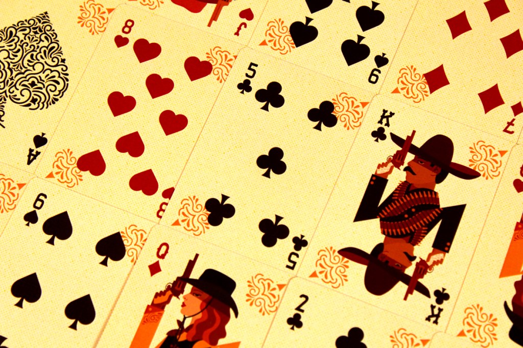 Before locking down your suit and value for a turn, you may spend two gold to change your suit to whatever you want, and you can increment or decrement your chosen value by one for each gold you spend. Note that changes to your suit and value do not affect your poker card, and they don’t change the card for anyone else.