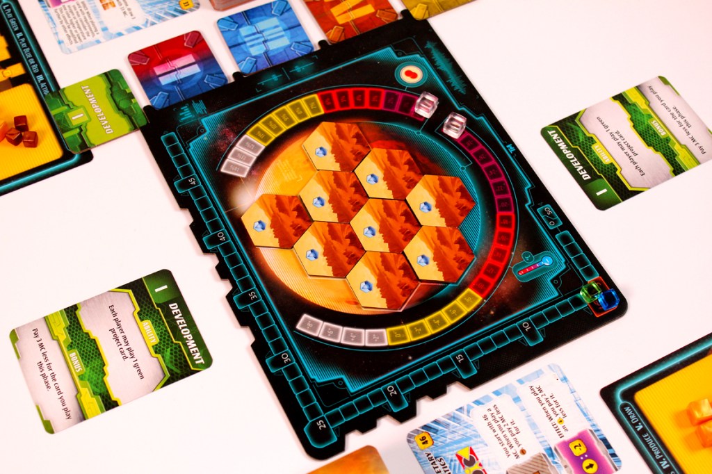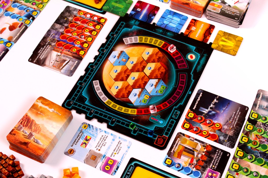 - I’m kind of dazzled after years and years of feedback that the player boards are still … mediocre. It feels a bit cynical to even note this, but it’s pretty clear that folks have had problems in the past with the Terraforming Mars player boards, given that you need cubes to sit precisely on them so that you can track various quantities. They even have double-layered player boards in the Kickstarter edition; I’m disappointed that those didn’t end up making their way to the retail release. The boards are okay as long as you never jostle them, otherwise you might risk losing track of your income, and it’s hard to recalculate that on the fly without going by hand.
