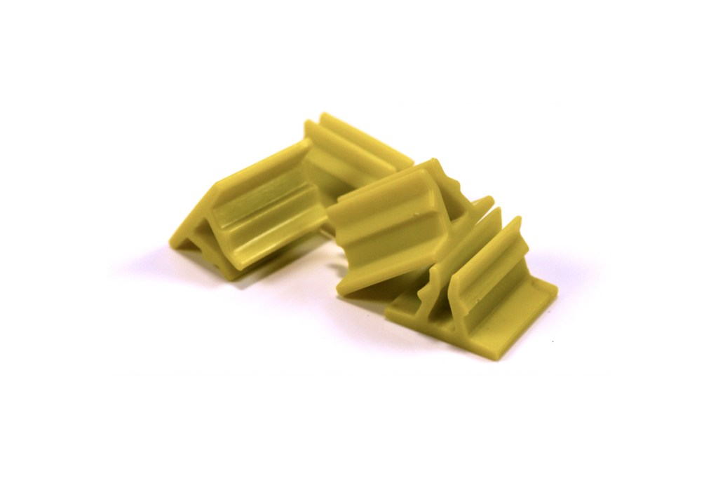 Attach the four dice flick bases to the green spaces around the box bottom:
