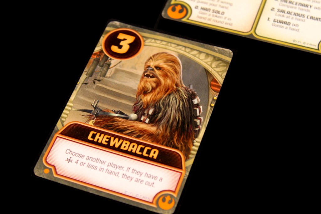For most Love Letter games, I generally don’t recommend playing with just two players. It’s fine, but part of the fun is the high-chaos play that generally happens with three or more. Granted, a lot of games eventually get to two players, anyways, but starting there isn’t necessarily my favorite. Given that my favorite card in Star Wars: Jabba’s Palace is the multiple-player-eliminating Rancor, that still holds true, here. I think there’s a lot of fun in deciding which player to go after and who to mess with and how to use the information that other players have leaked as they play. You just don’t get as much of that in a two-player game; you kind of just get a good hit in and the round’s over. I will say that the entropy can often work against players, granted, but it’s fun to see who comes out ahead in all the chaos. To that end, I’d probably most enthusiastically recommend Star Wars: Jabba’s Palace with more than two players. It’s not bad at two; it’s just better with more.