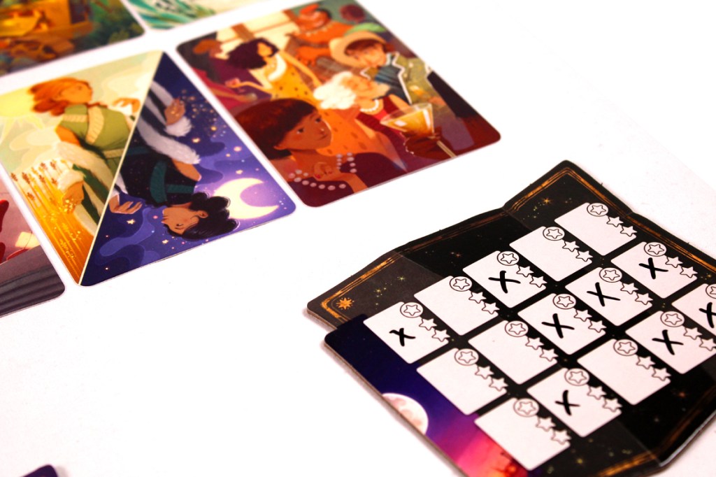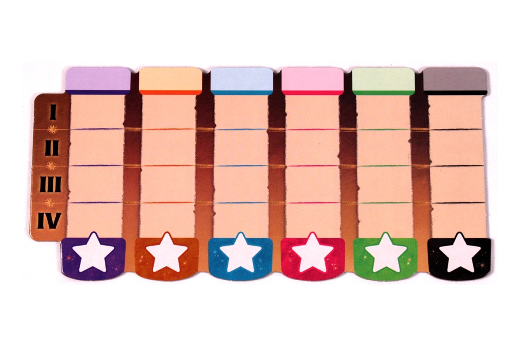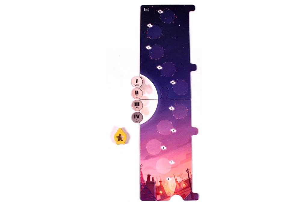 Each player scores one point for each star that’s been filled in on their player board, with one exception! The player who went In the Dark scores normally if they never Fell; if they did Fall, they earn one fewer point on each Spark and Super-Spark (essentially, they earn one fewer point for each set of stars they filled in on their player board).