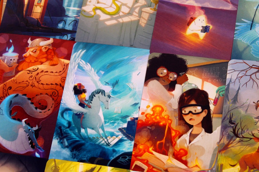 Overall, I really quite enjoy Stella! I think it’s a fantastic, modern-feeling iteration on the Dixit formula that’s unique, compelling, and still true to the core of Dixit, which is really cool! I thought, honestly, it was going to be another Dixit-style clone, but instead, it’s a nice and clean party game that really works well with just about any group I’ve sat it down with! Big fan. For me, it’s also nice to have a game that uses the Dixit cards I used to accumulate for another purpose; it’s a form of upcycling or something, probably. I will say that, strategically, it’s lacking, somewhat; it’s hard to make up for lost ground in Stella without a confluence of the right word, the right cards, and the right other players. This is probably an issue, but also, for the right party game, who cares, really? Stella has grown to be one of my favorite games to play with large groups on Board Game Arena, as well; it works well remotely and the asynchronous play doesn’t actually bring it down, either. If you’re looking for a party game that plays well with a lot of groups, you’re also overloaded on Dixit cards, or you’re just looking for a game with some nice art, I’d definitely recommend checking out Stella! It’s a lot of fun.
