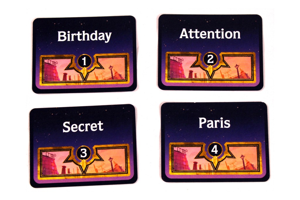 Select four Word Cards and place them next to the board as a draw pile. You can start with the Discovery Word Cards, if you’d like: