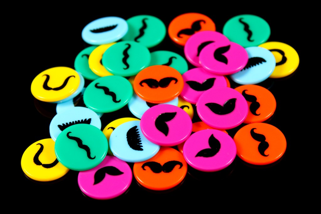 - I love the new components for this game. The mustache tokens might be one of my favorite components in any game? Hard to say, but it’s definitely up there and that’s a statement I’m comfortable making. They have a different mustache for each color!