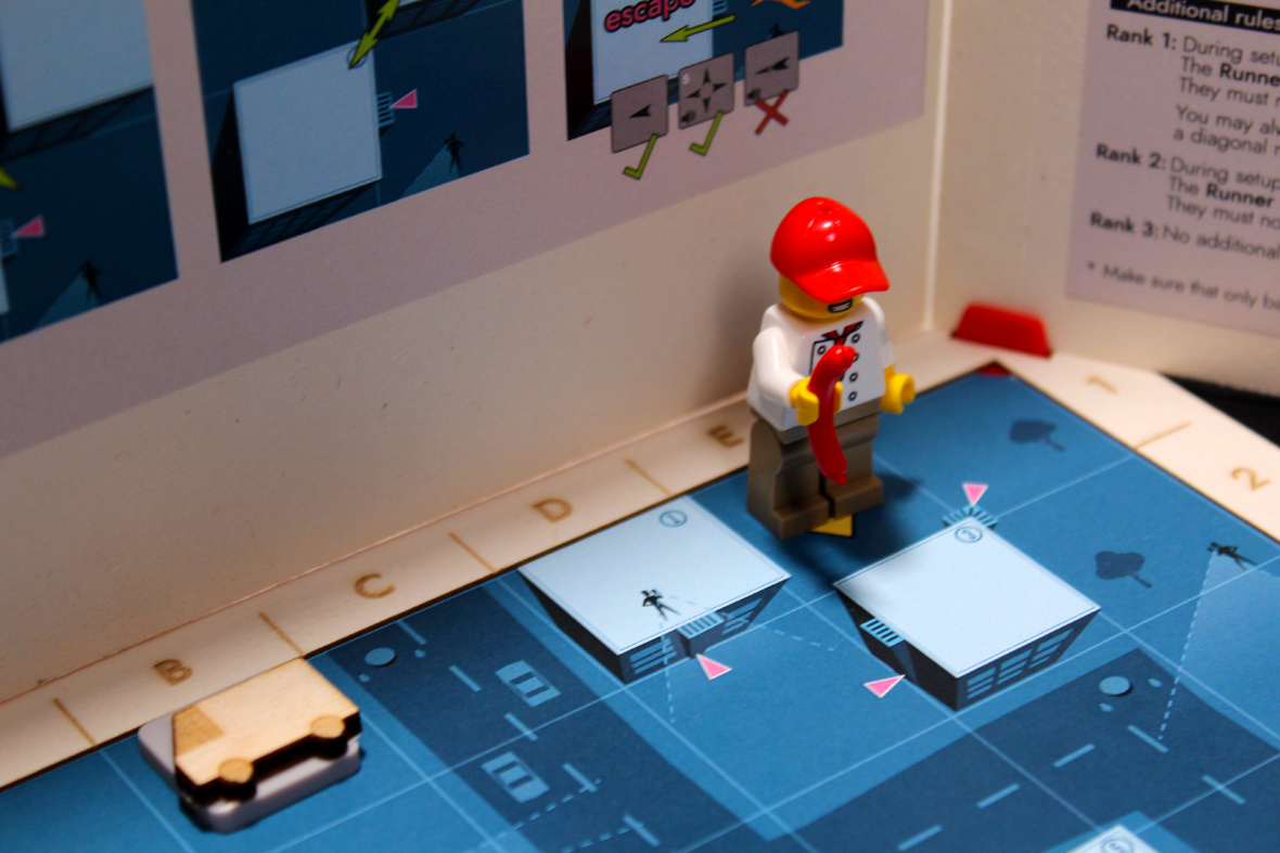 - The Runner must use a Fire Escape to get on top of a Building. Realism strikes again! The Runner cannot enter buildings, so they have to approach the fire escape from the indicated direction to get on top of the building. Once on top of a Building, they can move onto adjacent (even diagonally-adjacent) buildings.