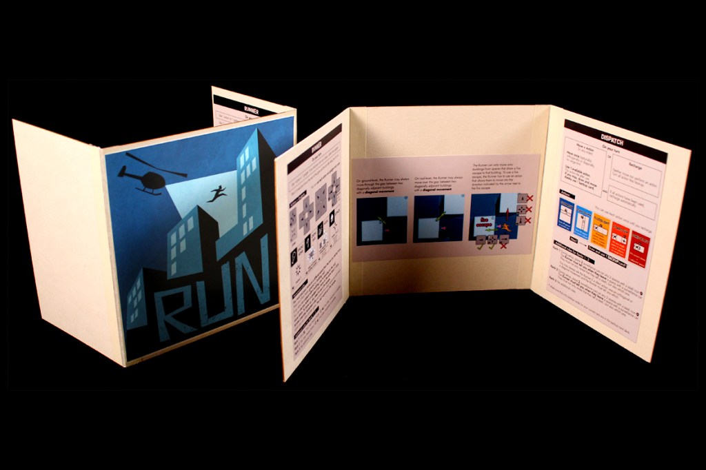 In Run, you’ve got a chase on your hands! One player takes on the role of Dispatch, sent to catch the other player, the Runner, before they can collect various Gadgets from their Stashes about town and make it to a Safe House. The Runner is trying to move silently and quickly, but Dispatch has a lot of tools, a lot of backup, and a very large helicopter, so that’s going to be quite the challenge. But Dispatch isn’t the only one with fancy Gadgets. The chase is on across the nighttime city streets; will you be able to avoid capture or will you get your prey?