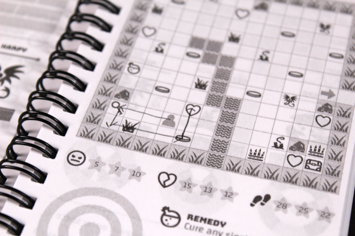 None here! Take the notebook, grab a pencil, and you’re ready to start! Read the rules and begin on the first level.
