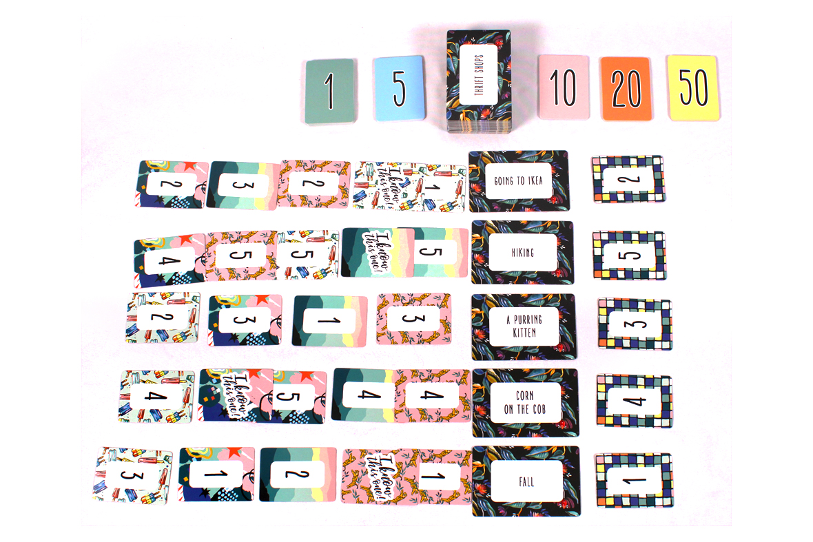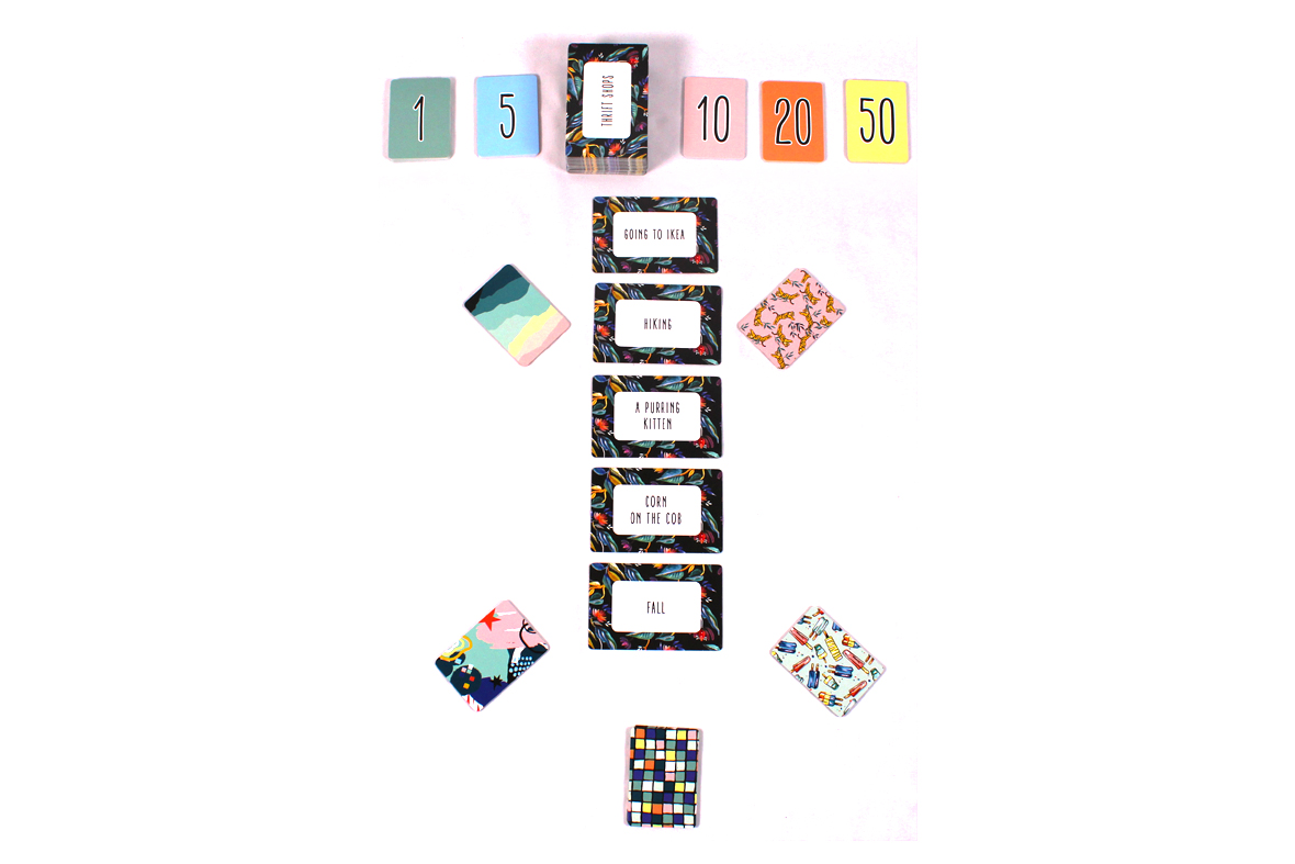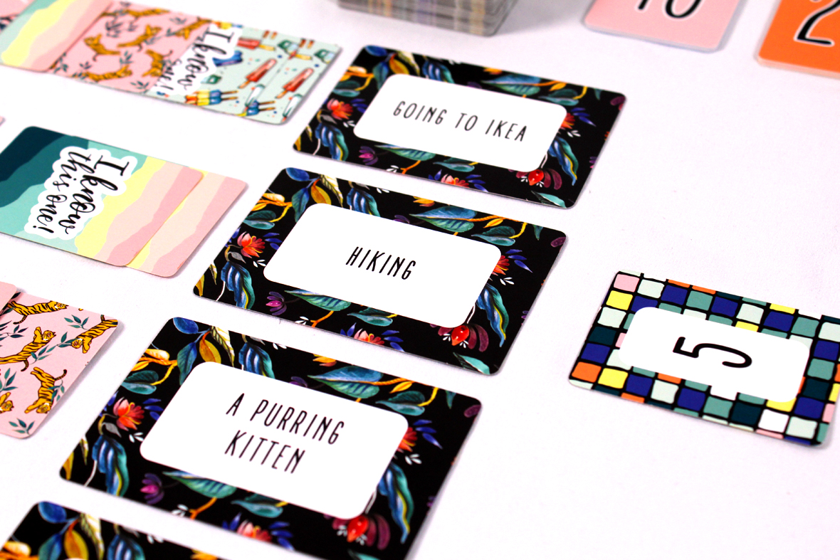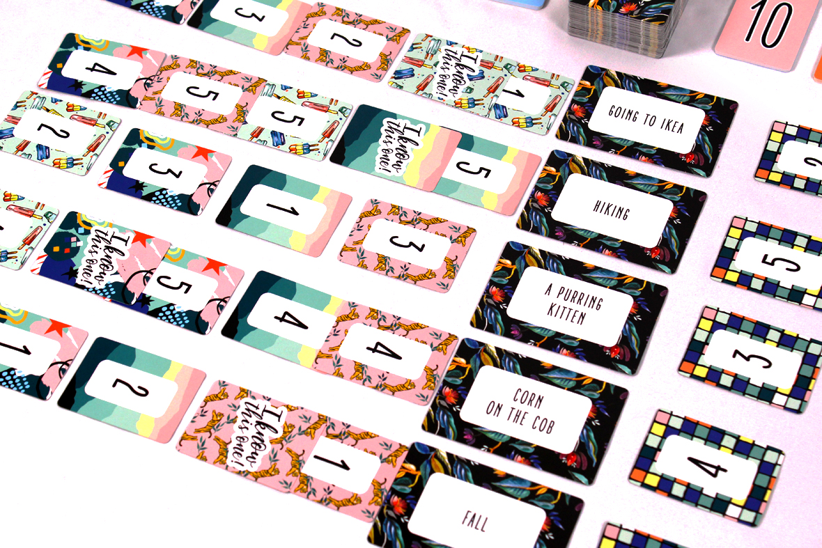 Over the course of a round, the Guessers have to try and guess the ranking order of the Player of Honor’s preferences based on the 5 topic cards. The Guessers start by placing all of their number cards face-down in front of topic cards (5 being the least-preferred, and 1 being the most-preferred). Each Guesser should also play their “I know this one!” card on one of their number cards, as well. Once they’ve done so, the Player of Honor plays their number cards face-down, as well.