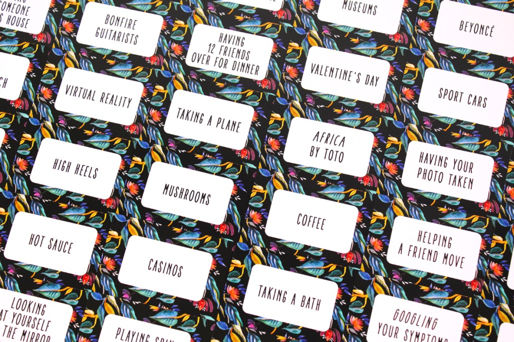 - I’m surprised there are no blank cards in a game like this. This definitely seems like a game where you’d want to be able to add your own cards into the mix for players, and a lot of party games tend to include their own blank cards to allow for that level of customization.